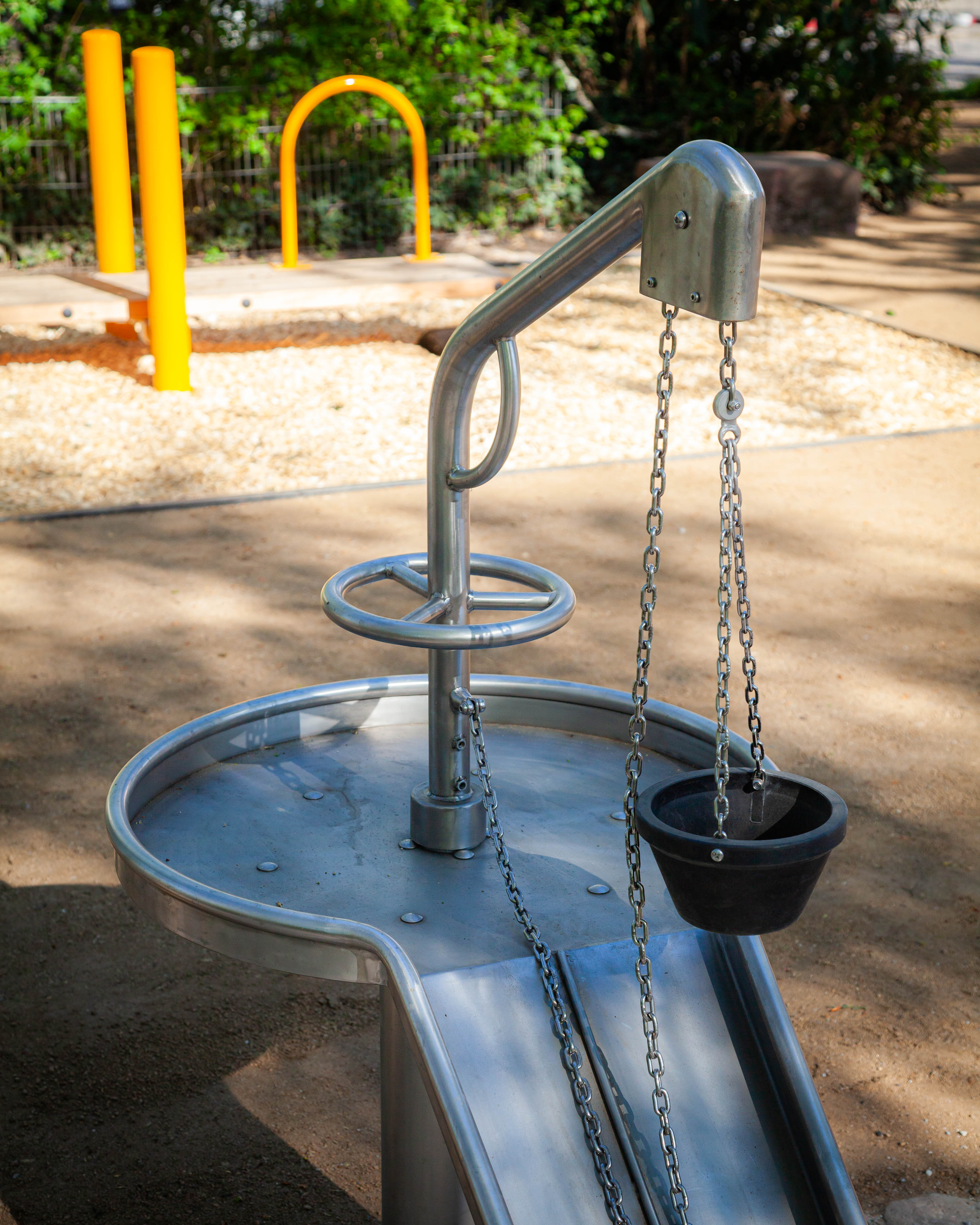 Bei ihrer Ansprache nannte die Erste Bürgermeisterin die Kosten: „Rund 160.000 Euro hat die Stadt Mannheim investiert, damit in der Feldstraße ein Treffpunkt für Familien, Jugendliche und ältere Menschen entsteht.“ Für die Jüngsten wurde ein Sandspielgerät mit einer kleinen Rutsche aufgestellt, für größere Kinder eine Kletterstrecke mit Seilen, Netzen und Feuerwehrstange. Eine Stehwippe sorgt für Spaß und Gleichgewichtstraining. Mit oder ohne Rollstuhl können das Trichter-Telefon, die Wippe und der unterfahrbare Sandeltisch genutzt werden. Auch die Hangrutsche hat einen verlängerten Einsitzbereich, damit Kinder aus dem Rollstuhl gut einsteigen können. Der Bolzplatz hat einen neuen Streetballkorb und neue Markierungen für Streetball und Fußball bekommen. Abgerundet wird der Bereich, der besonders für Jugendliche interessant ist, mit einer Tischtennisplatte und einem Holzpodest als „Chillecke“. Es kann auch als Bühne für Veranstaltungen benutzt werden. Für ältere Menschen gibt es jetzt mehrere Bänke zum Verweilen.