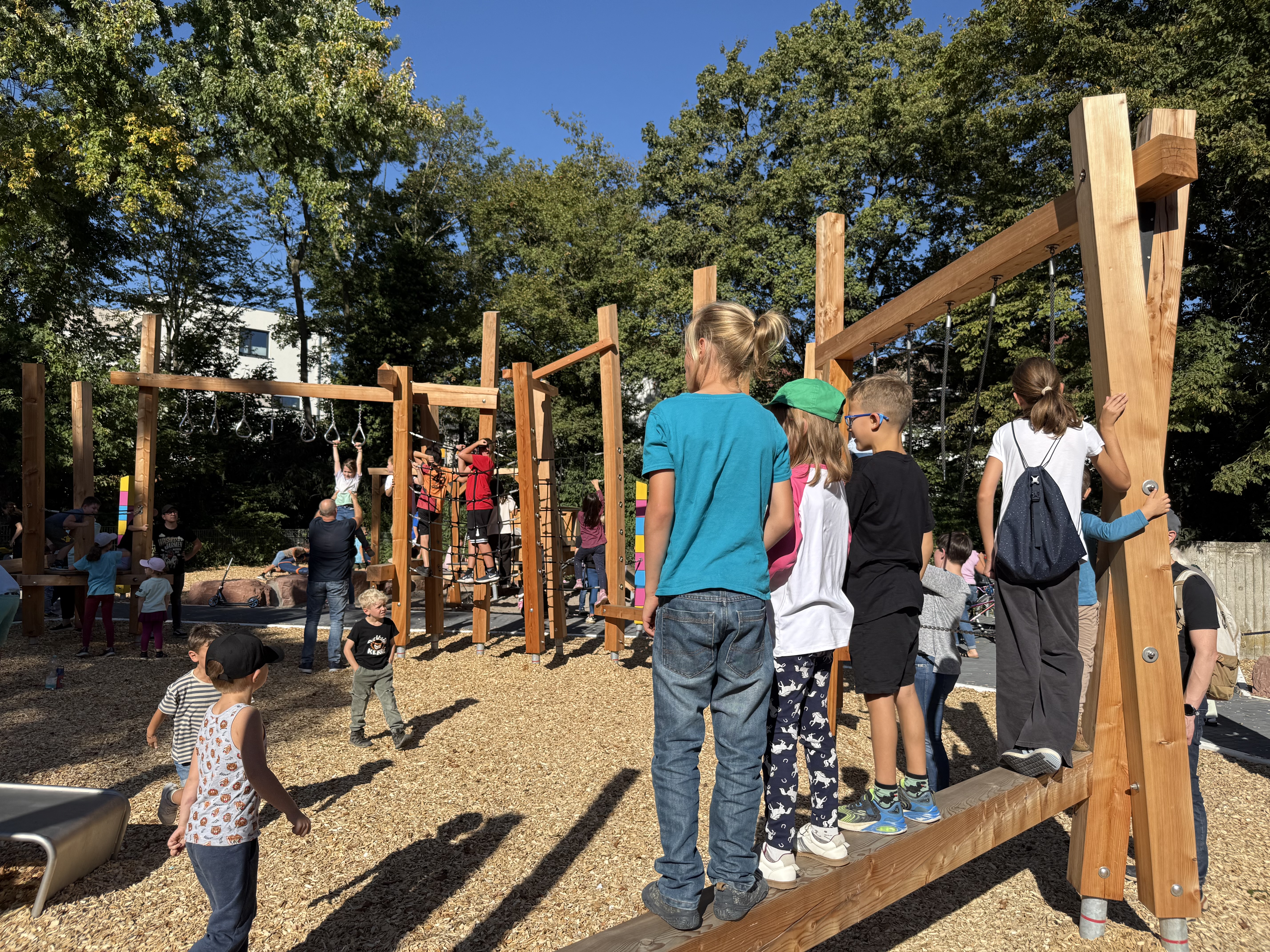 Seit Juni hatte die Stadt Mannheim den Spielplatz neben der Friedrichsfeldschule saniert, jetzt ist er frisch eröffnet. Mannheims Erste Bürgermeisterin Prof. Dr. Diana Pretzell kam gestern mit Menschen aus der Nachbarschaft zu einem Fest auf dem Spielplatz zusammen. Auch die Friedrichsfeldschule war dabei.