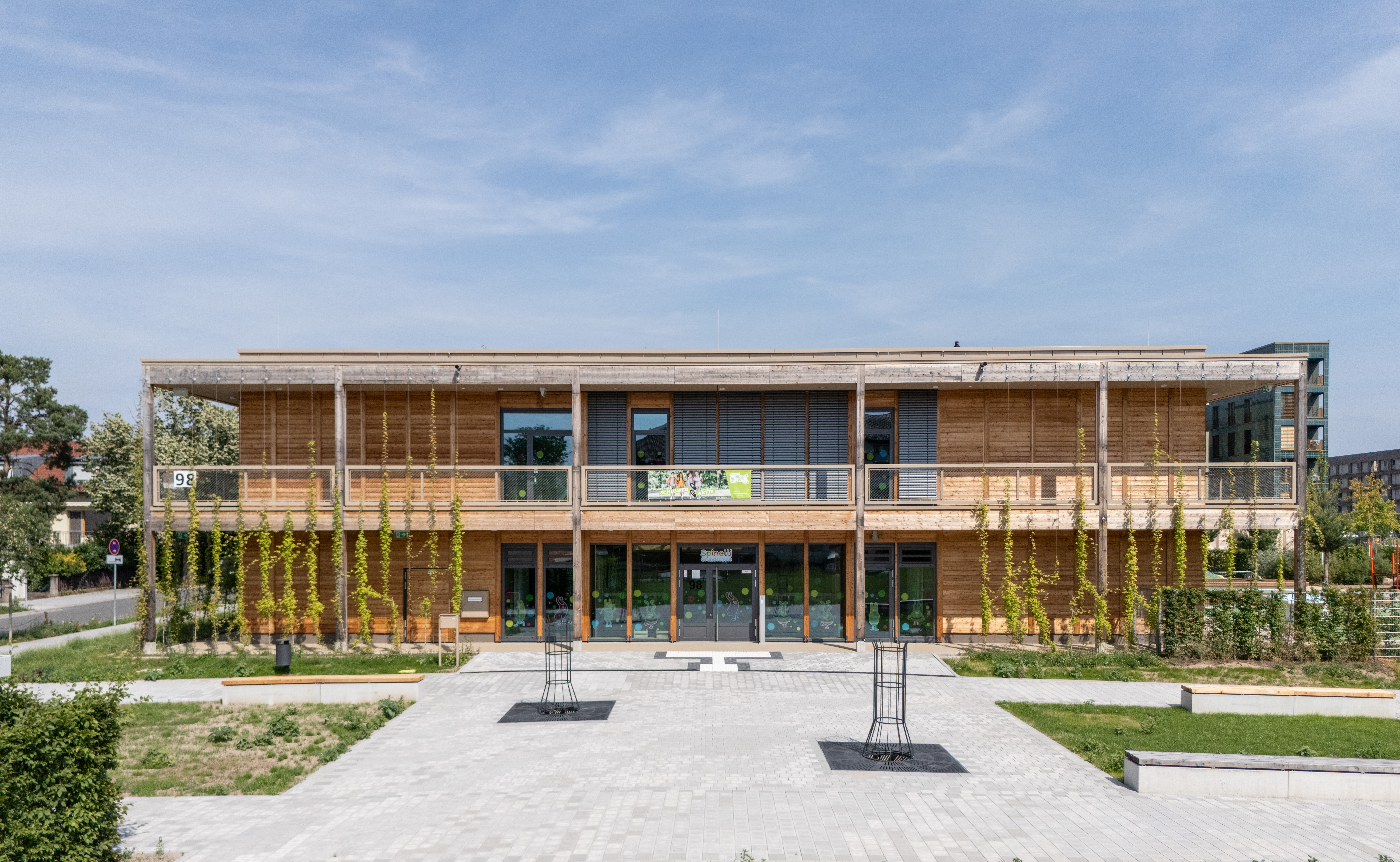Spinelli soll langfristig als CO2-neutrales Quartier entwickelt werden und so sind Umweltaspekte auch beim Bau der Grundschule elementar gewesen. Dank des Einsatzes nachwachsender Rohstoffe – der Baustoff Holz ist innen wie außen deutlich sichtbar – und einer energieeffizienten Gebäudetechnik plus Photovoltaikanlage ist die neue Spinelli-Schule ein besonders nachhaltiges Schulgebäude.