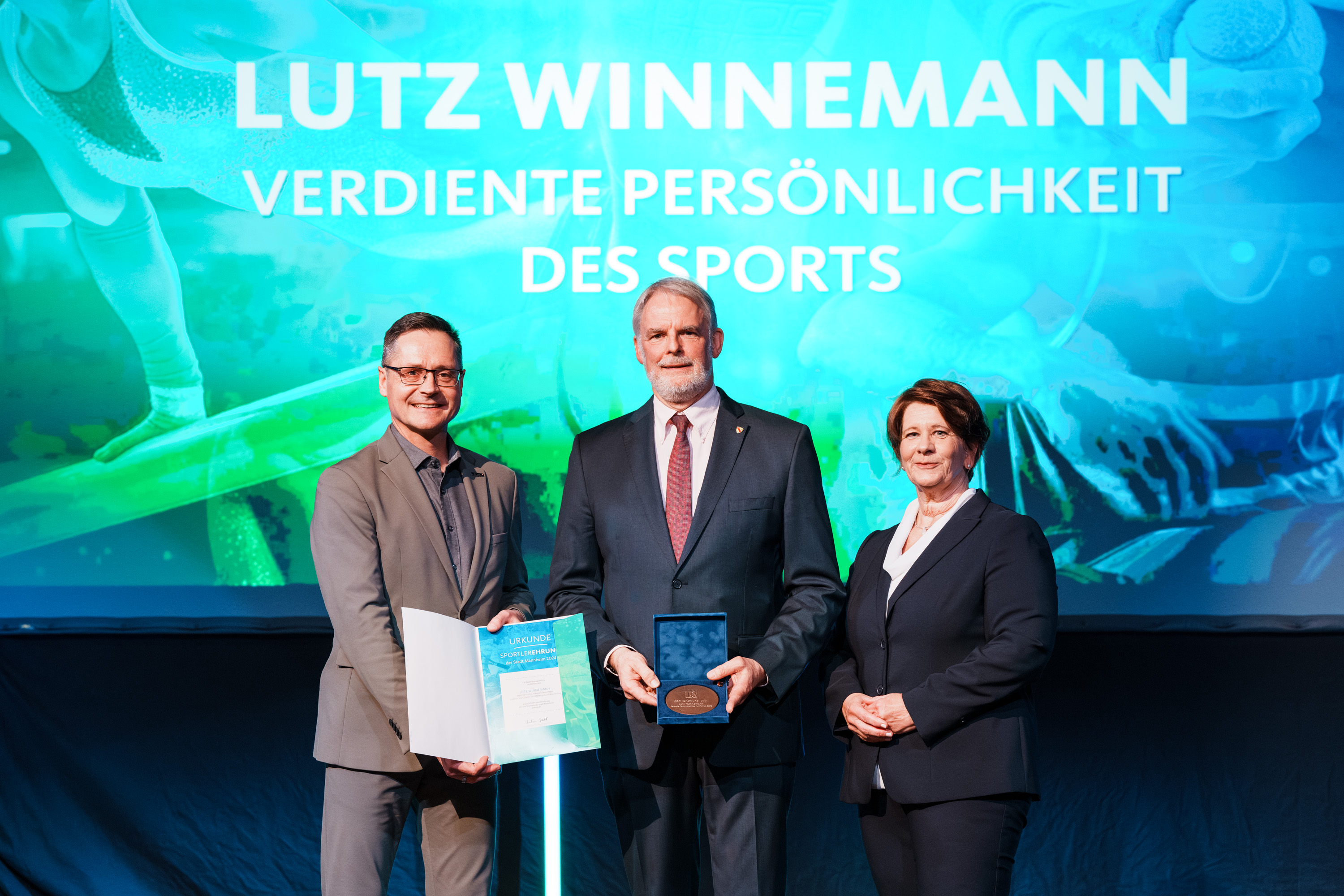 Die Auszeichnung „Verdiente Persönlichkeit des Sports 2024“ ging an Lutz Winnemann. Lutz Winnemann ist Ehrenmitglied bei der Turngau Mannheim und Ehrenvorsitzender bei der Sportkreisjugend Mannheim und engagiert sich seit Jahrzehnten im Mannheimer Sport.