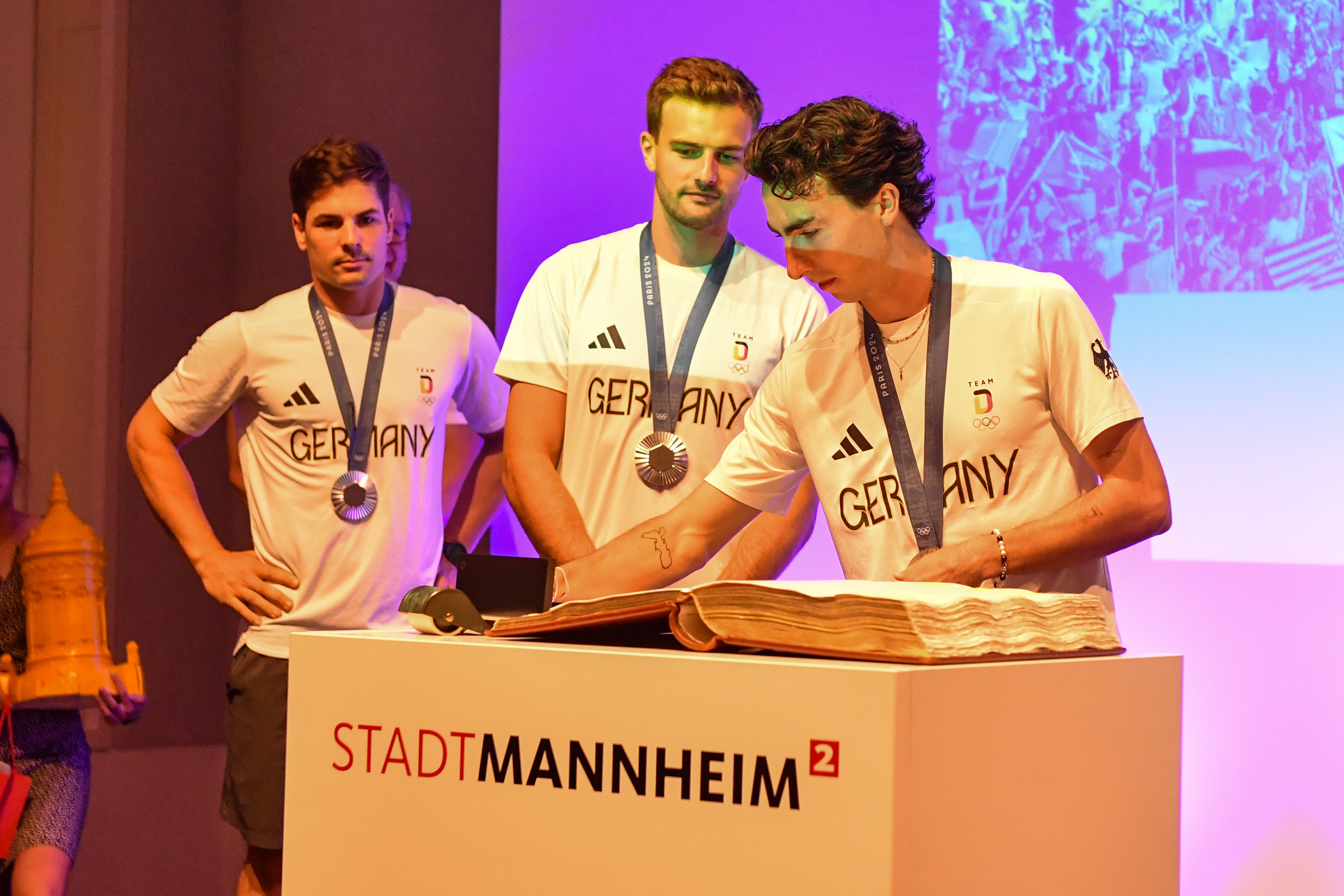 Bei dem Empfang wurden nicht nur die Olympia-Teilnehmenden geehrt, sondern auch die Teams um sie herum – zum Beispiel die Trainer, Physiotherapeuten und Vereinsmanager. Dem Lob und Dank des Oberbürgermeisters schlossen sich zahlreiche Mitglieder des Gemeinderats vor Ort an.