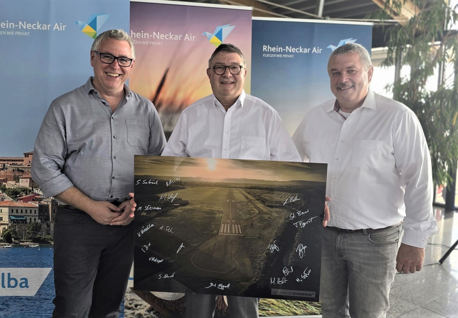 „Er war immer offen für neue und unkonventionelle Wege“, beschreibt Aufsichtsratsvorsitzender Bürgermeister Thorsten Riehle den langjährigen Geschäftsführer der Flugplatz Mannheim GmbH Rheinhard Becker. Nach über 20 Jahren in dieser Position wurde er Ende Juni in den Ruhestand verabschiedet und gleichzeitig der City Airport in die Hände seines Stellvertreters und Prokuristen Dirk Eggert übergeben.