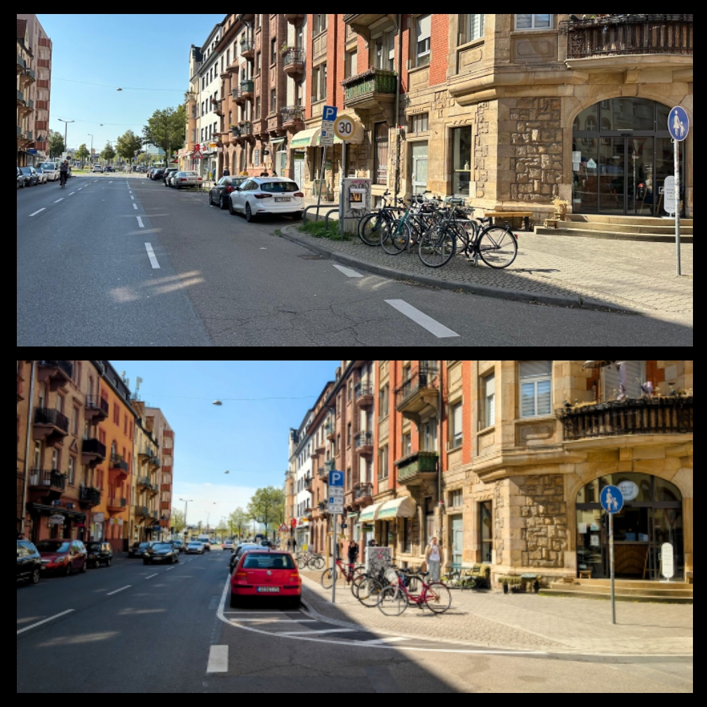 Der „verkehrsberuhigte Geschäftsbereichs“ liegt zwischen dem Knotenpunkt Käfertalerstraße und der Geibelstraße. Auch der Rechtsabbieger in Richtung Alter Messplatz an der Kreuzung zur Käfertalerstraße wurde für eine bessere Querbarkeit in Teilen zurückgebaut. In dem Bereich ist künftig Tempo 20 erlaubt. Darauf weisen Schilder am Anfang und Ende des Bereichs hin.
