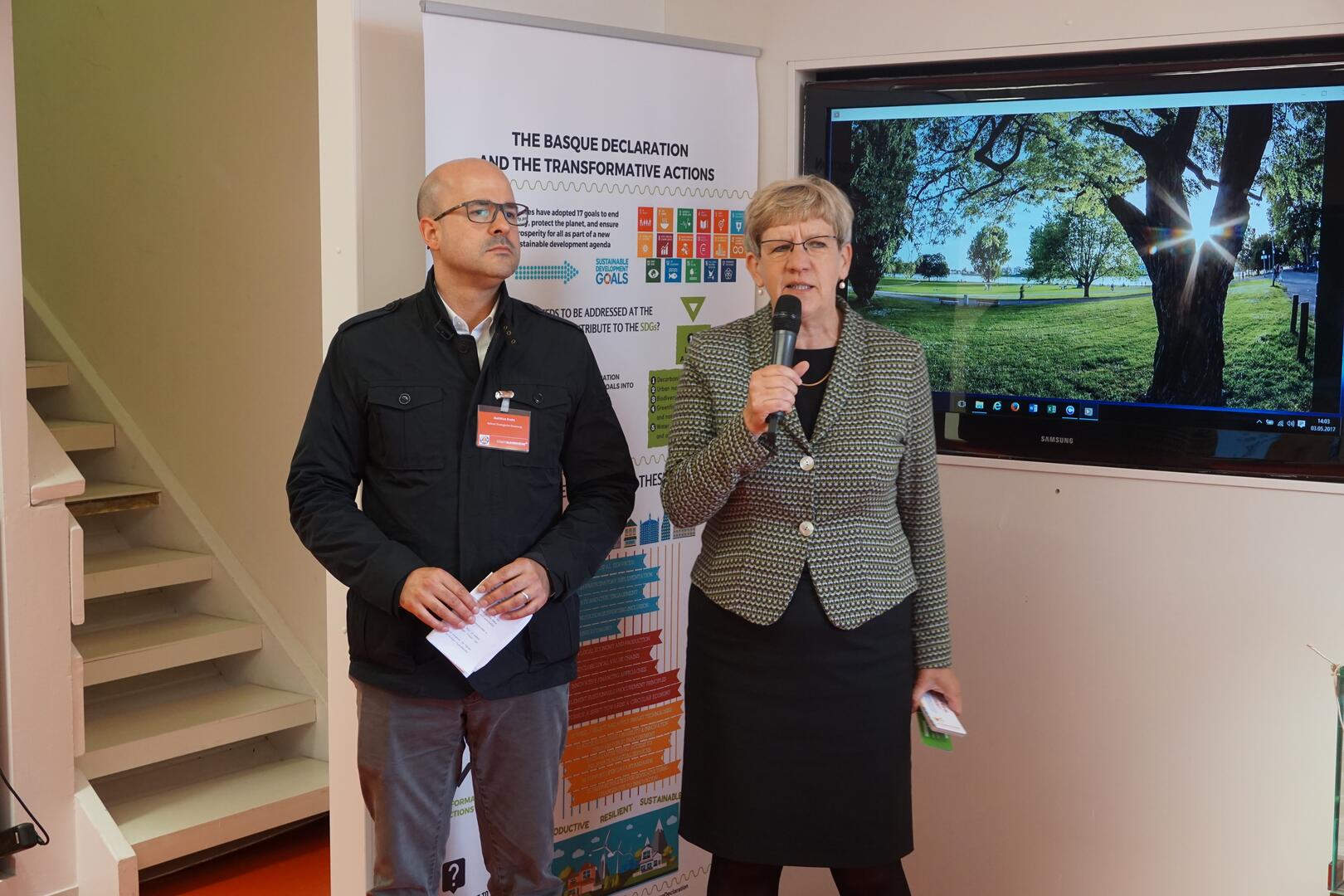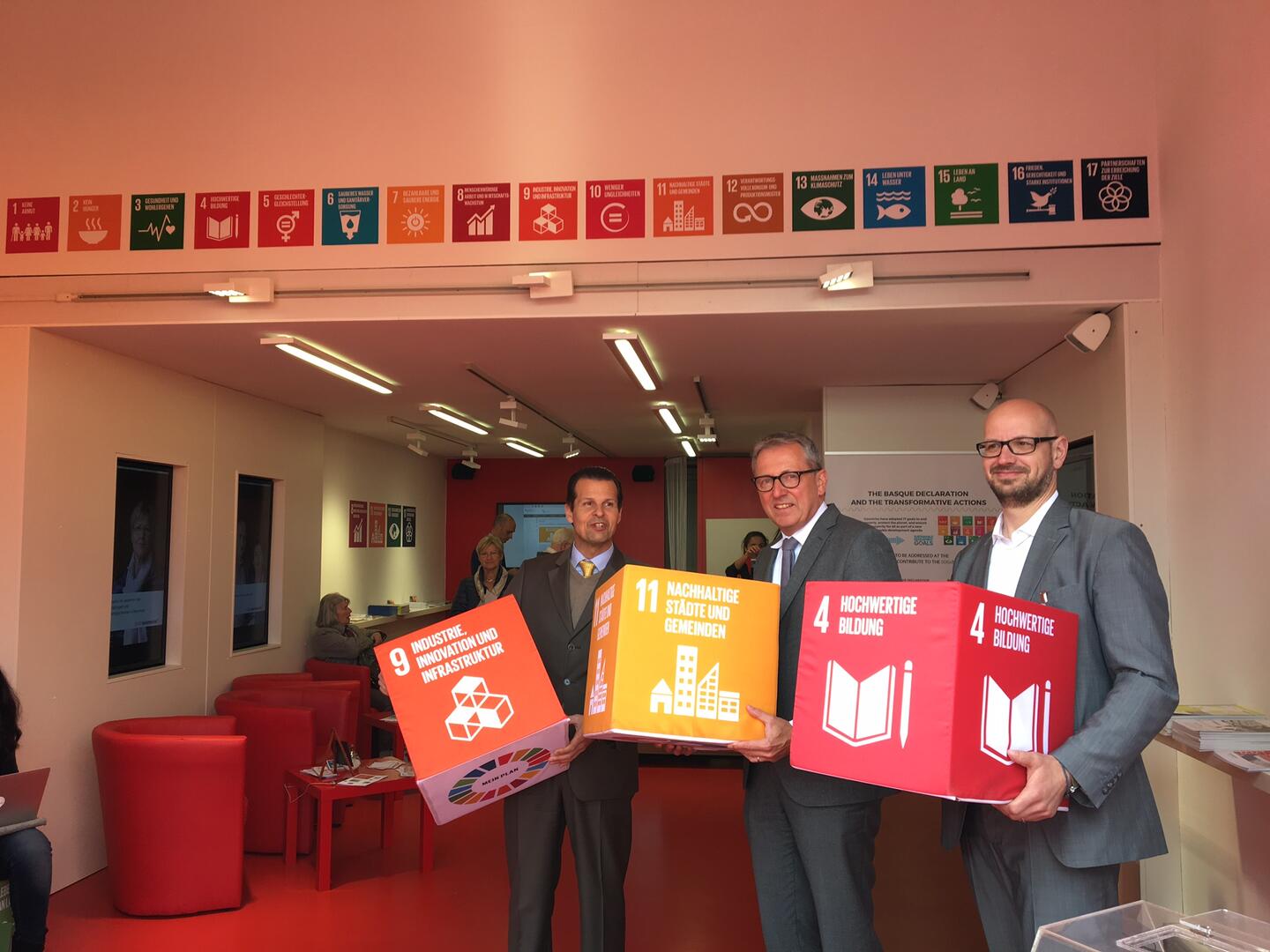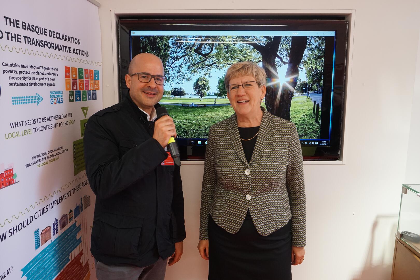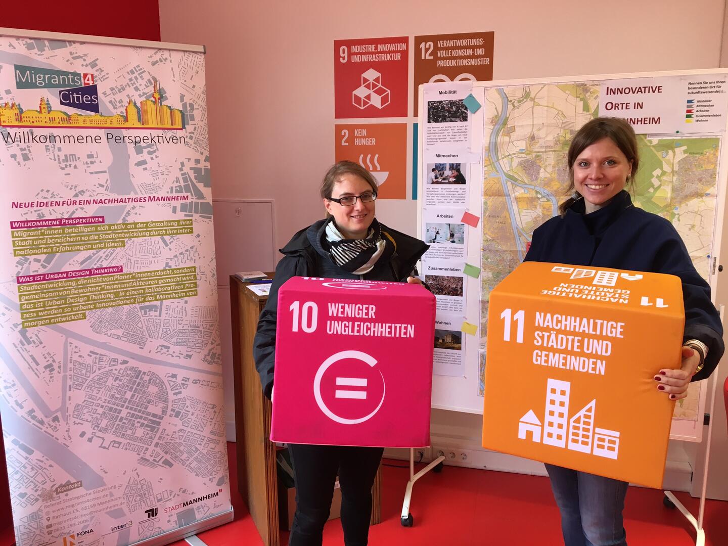Eine täglich auf dem Maimarktgelände stattfindende Tablet-Umfrage zur Agenda 2030 sowie eine Postkartenumfrage und ein Gewinnspiel zu den Sustainable Development Goals am Stand machten das Themenfeld Nachhaltigkeit zum zentralen Gesprächsgegenstand. Die täglichen Interviews mit Expertinnen und Experten aus der Verwaltung und deren externen Umfeld beleuchteten diverse Nachhaltigkeitsfacetten einer Stadt, darunter den Klimaschutz, die öffentliche Beschaffung, das Grün in der Stadt und auch neue Formen des Wohnens und Zusammenlebens.