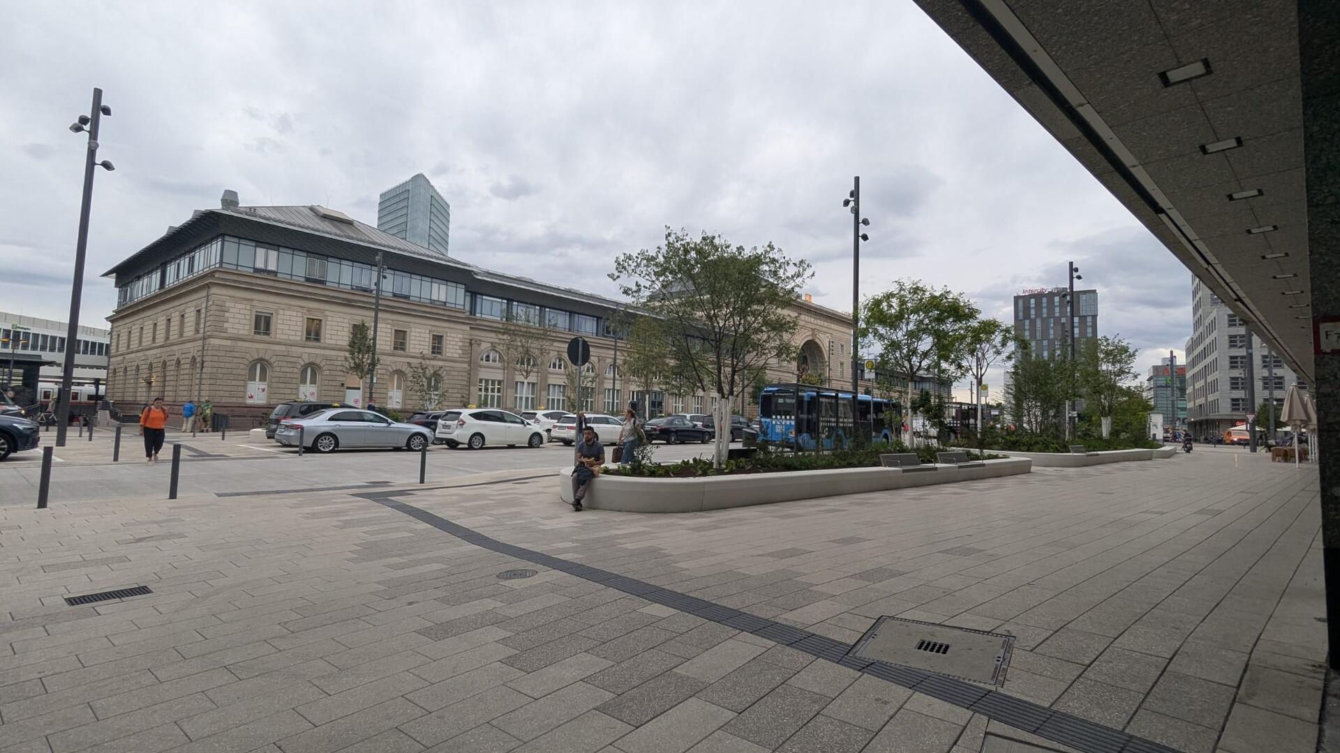 Der dritte und letzte Bauabschnitt folgte dann von Herbst 2024 bis Juli 2025. In diesen 9 Monaten wurde die Wendeschleife der Regionalbusse sowie der Taxiwartebereich neugeordnet und sechs Grüninseln mit Sitzgelegenheiten angelegt.