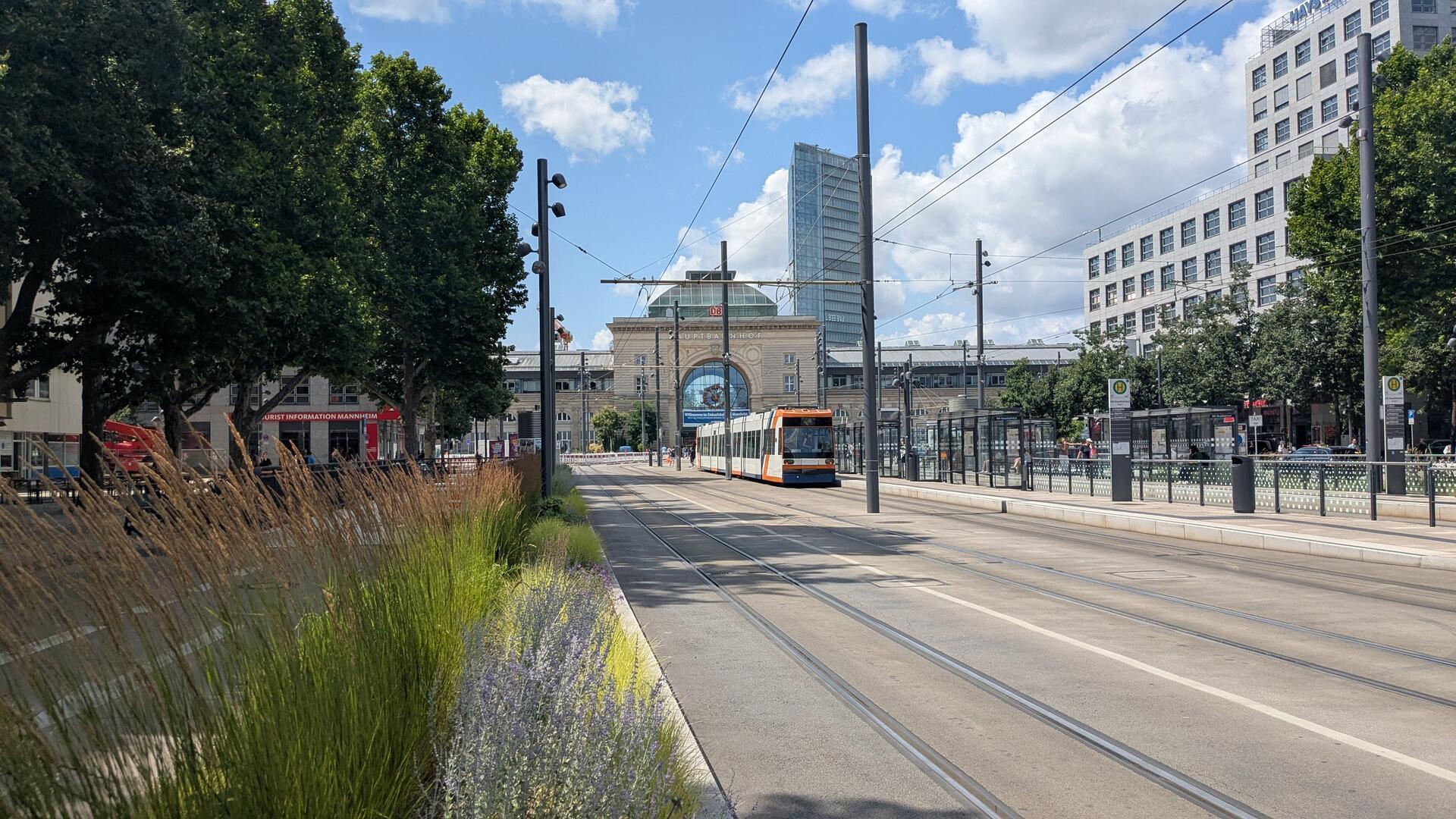 Es ist ein übersichtlicher und heller Vorplatz als Entrée zur Innenstadt mit neuen Haltestellen des ÖPNV und vielen Sitz- und Aufenthaltsmöglichkeiten ist entstanden. Insgesamt bieten zehn neue Grüninseln mit ihren großzügigen Einfassungen attraktive Sitzmöglichkeiten im Schatten an und werden sehr gut angenommen. Mit ihren großzügigen abwechslungsreichen Bepflanzungen leisten sie einen wichtigen Beitrag zur Kühlung, Biodiversität und Entsiegelung des innerstädtischen öffentlichen Raums. In den insgesamt neu gestalteten 17.500 m² (inklusive Haltestellen und Gleise) befinden sich neben den Flächen für die notwendigen Verkehrsfunktionen und die Erschließung, u.a. zahlreiche gastronomische Einrichtungen mit Flächen für Außengastronomie unter den großen Platanen, viele neue Fahrradständer, eine neue großzügige Fahrradverleihstation, ein Gedenken an die Deportationen nach Gurs, ein Elektro-Poller für Veranstaltungen auf dem zentralen Vorplatz sowie eine einheitliche neue Beleuchtung. Die eingesetzten hellen Materialien wirken aufgrund ihres hohen Reflexionsgrades der Aufheizung entgegen (Albedo-Effekt).