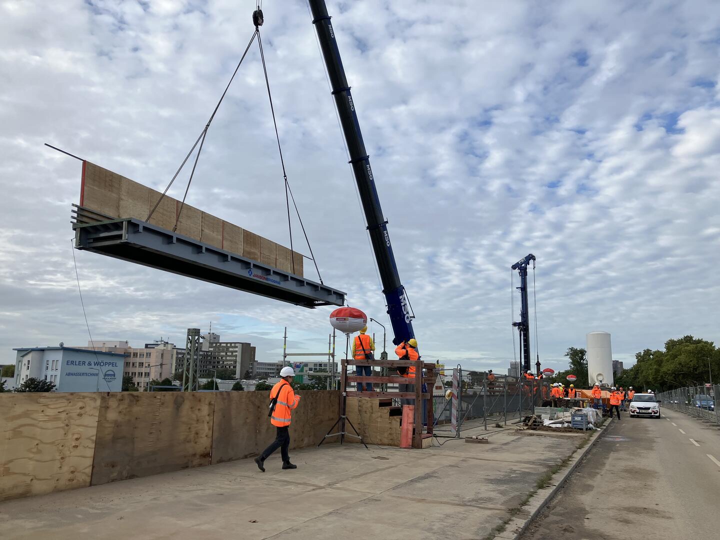 25. August 2025: Einhub weiterer Behelfsbrückenteile im September 2025
