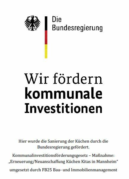 Im Rahmen des Kommunalinvestitionsfördergesetzes wurden bei der Stadt Mannheim durch den FB Bau- und Immobilienmanagement die Küchen in folgenden Kindertagesstätten erneuert/ ausgetauscht oder neu angeschafft.
