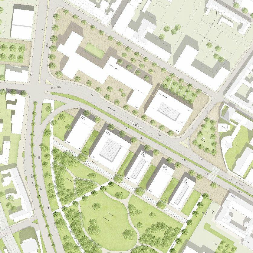 Um die Umsetzung des Rahmenplans zu ermöglichen, war die Aufstellung eines Bebauungsplans erforderlich. Mit dem Aufstellungsbeschluss am 24.03.2020 wurde die Verwaltung beauftragt, das Verfahren für einen Teilbereich, der drei Gebäude und die südlich angrenzende Parkfläche umfasst durchzuführen .