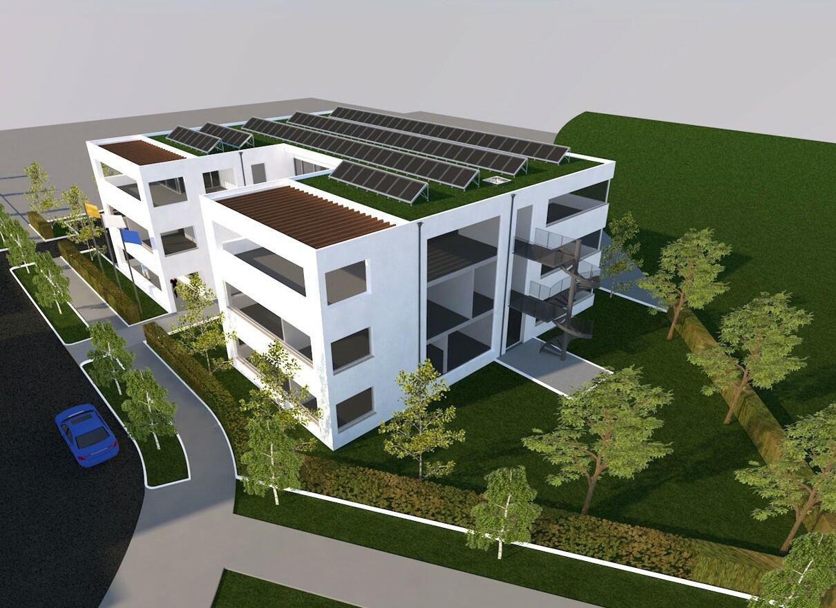 Die Verfasser, die bereits 2014 für die Bauherrin zwei Gebäude entlang der Erzbergerstraße saniert haben, stellen ihr Sanierungskonzept der Gebäude 1 und 2 vor. Ziel ist es, in der Oststadt einen Campuscharakter mit den insgesamt fünf Bestandsimmobilien der Interversicherung zu entwickeln. Daher sollen alle Gebäude nach und nach in einem für den Stadtteil typischen Beige Ton der Fassaden geändert werden. Bei den Gebäuden 3 und 4 wurde dies schon in der Vergangenheit realisiert.