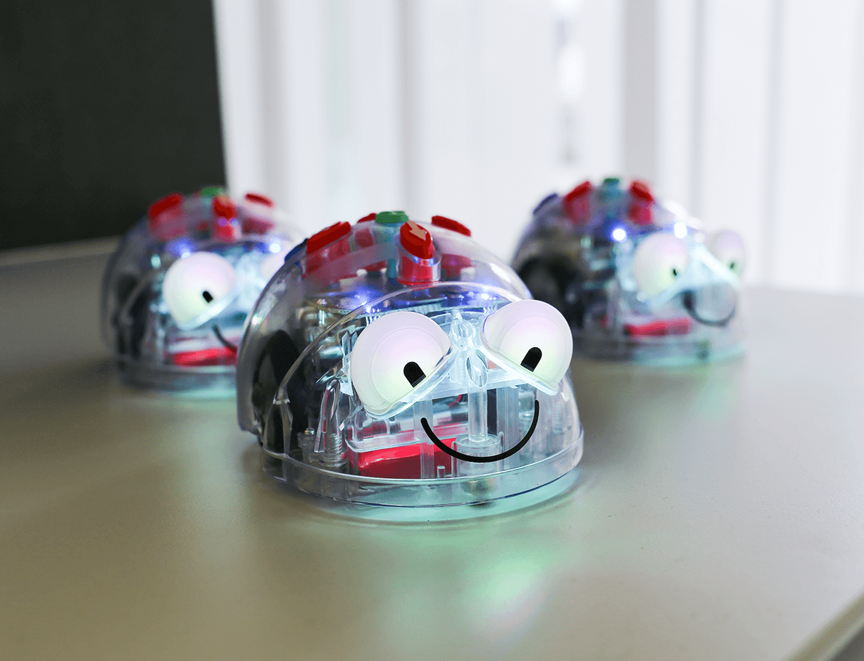Blue-Bots sind kleine fahrende ca. 15 cm große Bodenroboter, die wie Käfer aussehen und auf spielerische Art und Weise an das Programmieren heranführen. Die Roboter können entweder per Hand über Tasten auf dem Rücken der Geräte oder über die kostenlose Blue-Bot-App auf dem iPad gesteuert werden.