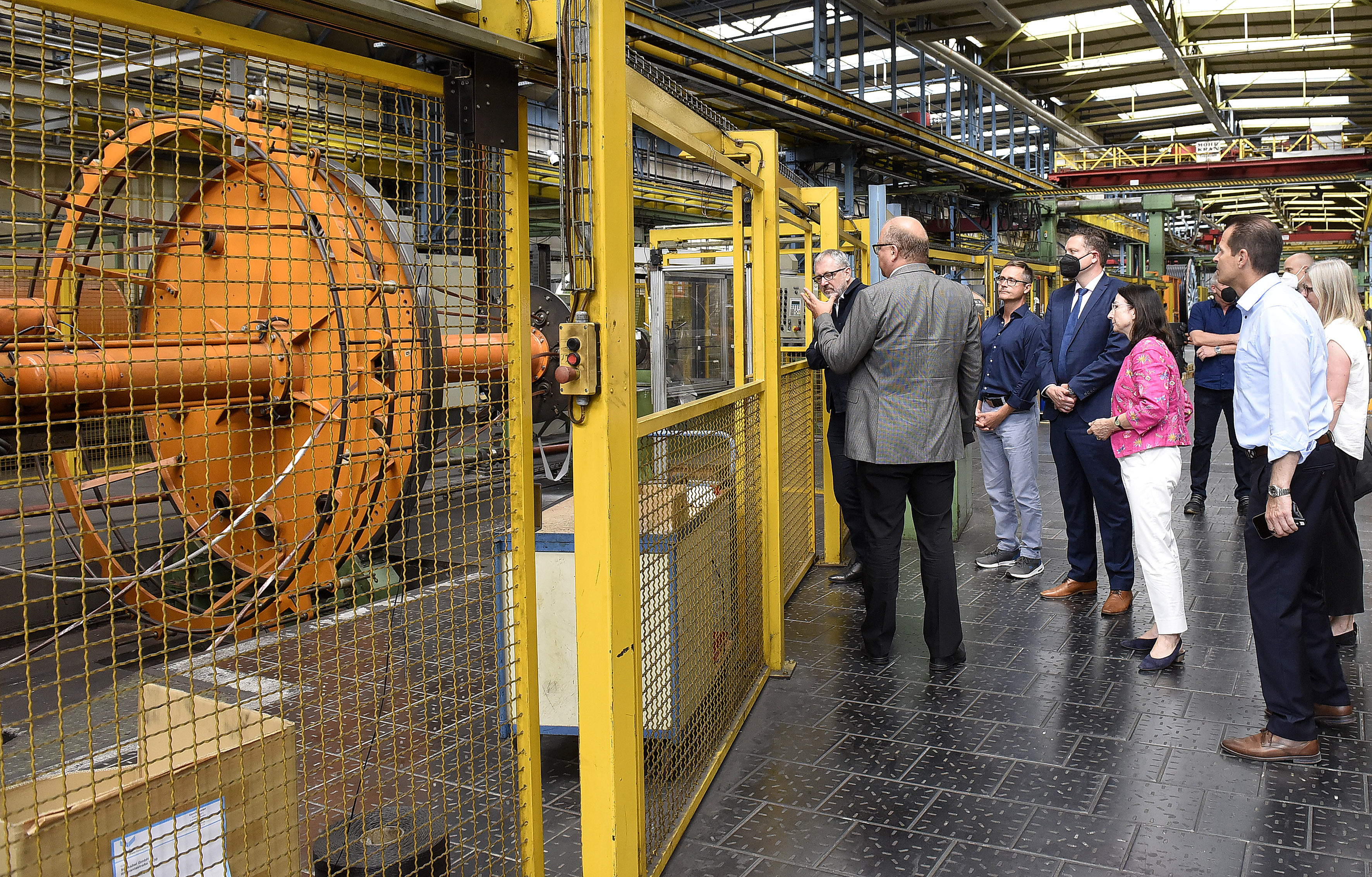 v.l.n.r. Oberbürgermeister Dr. Peter Kurz, Sebastian Ebert (Vertriebsleiter Südkabel), Wolfram Riegler (Betriebsratsvorsitzender Südkabel), Bürgermeister Ralf Eisenhauer, Christiane Ram (Leiterin des Fachbereichs für Wirtschafts- und Strukturförderung), Petar Drakul (Referent des Oberbürgermeisters), Dr. Johannes Kaumanns (Standortleiter Südkabel)