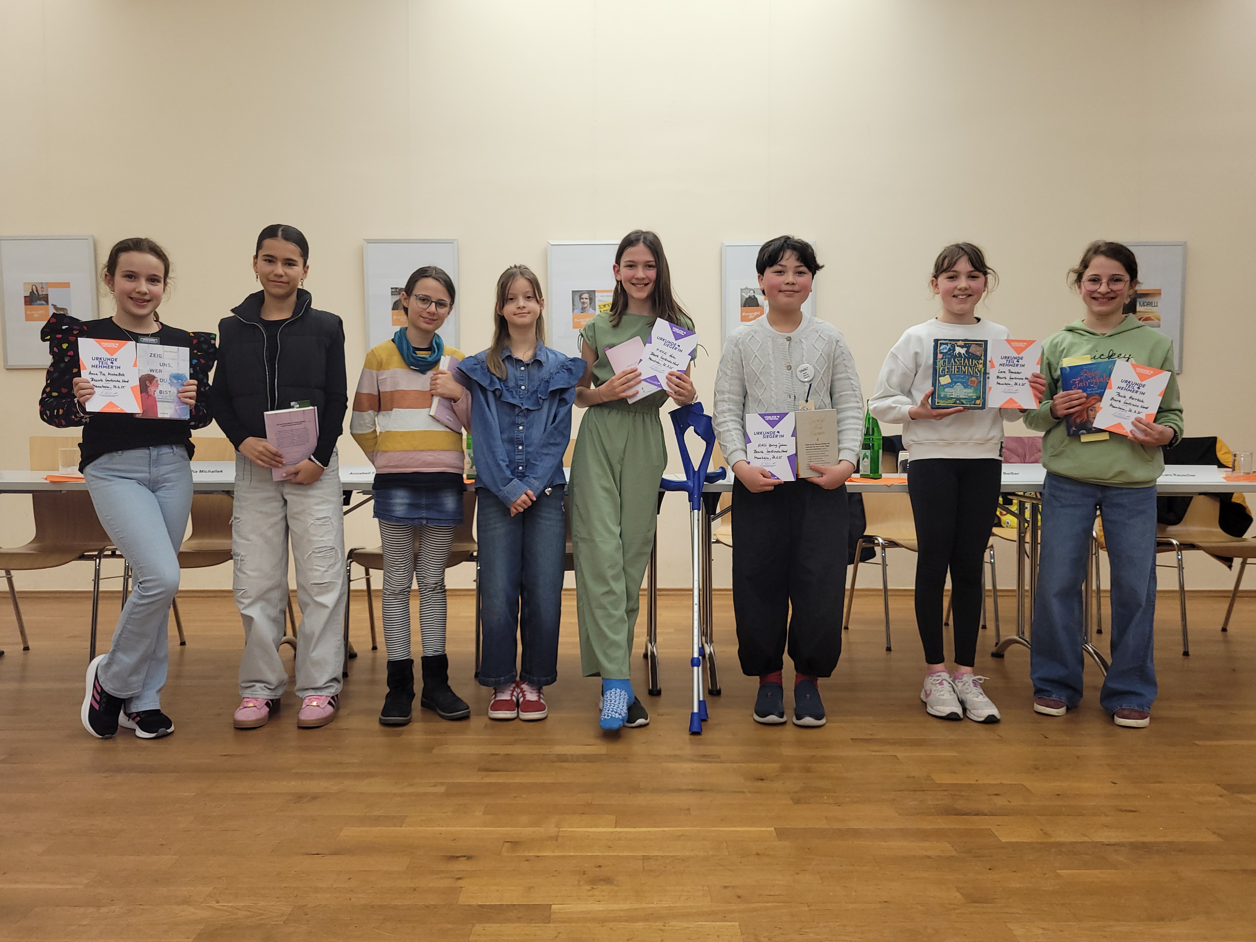 Teilnehmende des 66. Vorlesewettbewerbs Bezirksentscheid Nordbaden in der Stadtbibliothek Mannheim