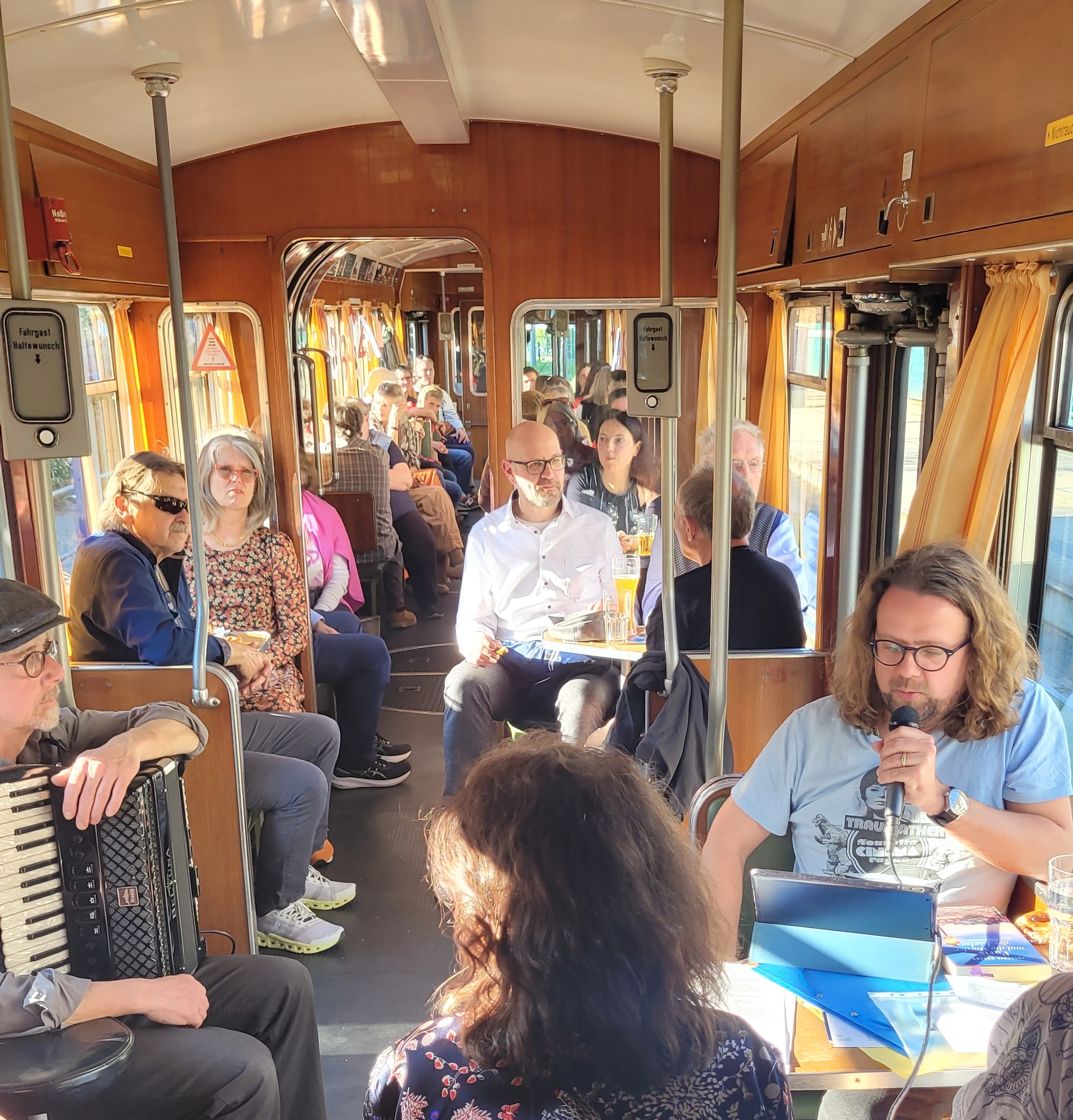 Feuergriffel Markus B. Altmeyer liest aus seinem Roman in der historischen Straßenbahn SIXTY