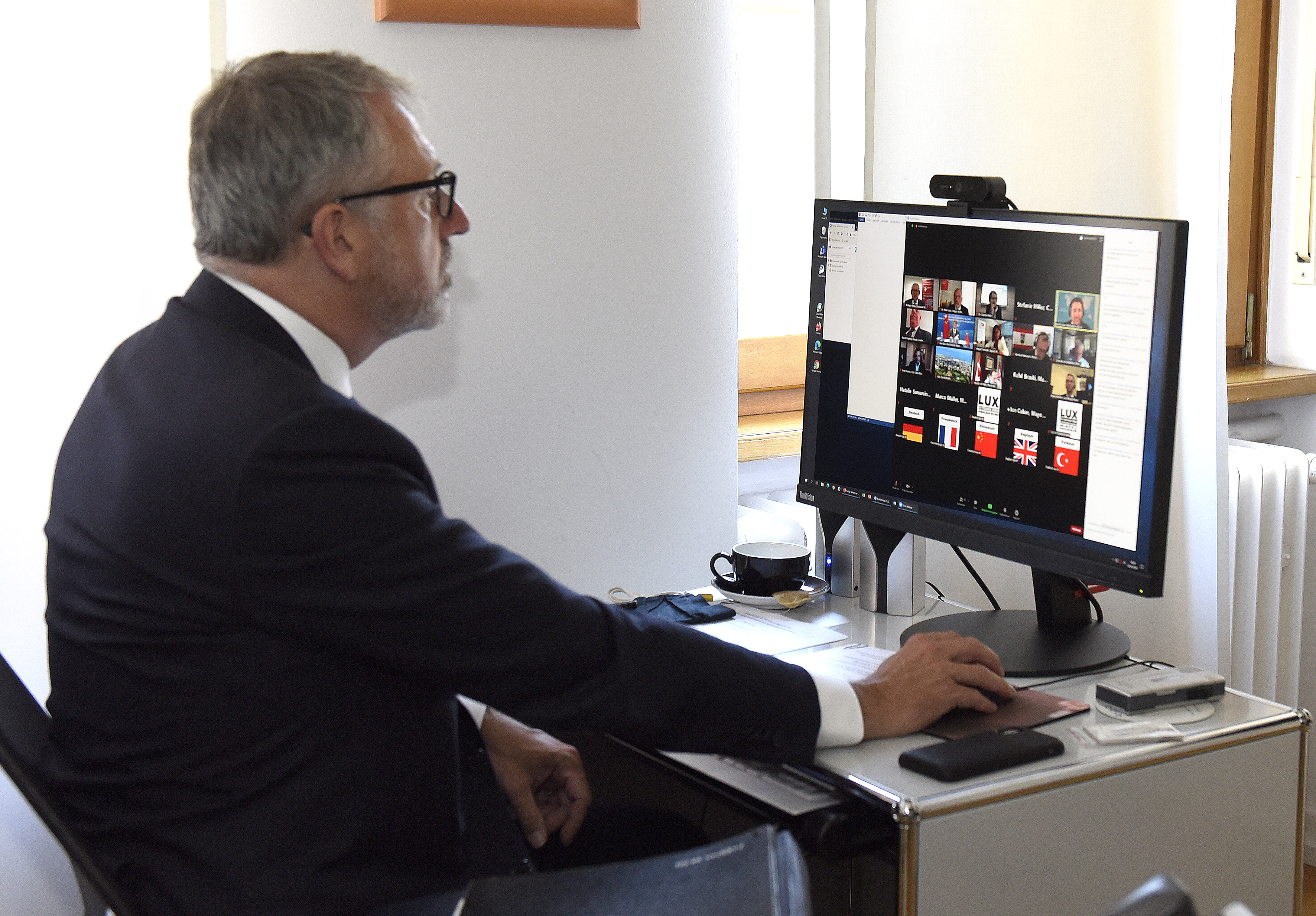 Begingen gemeinsam den bundesweiten Warntag (von links): Christoph Unger (Präsident des BBK), Christian Specht (Erster Bürgermeister und Sicherheitsdezernent der Stadt Mannheim), Jutta Steinruck (Oberbürgermeisterin der Stadt Ludwigshafen), Thomas Strobl (stellvertretender Ministerpräsidenten und Innenminister von Baden-Württemberg) sowie Randolf Stich (Staatssekretär im Innenministerium Rheinland-Pfalz).