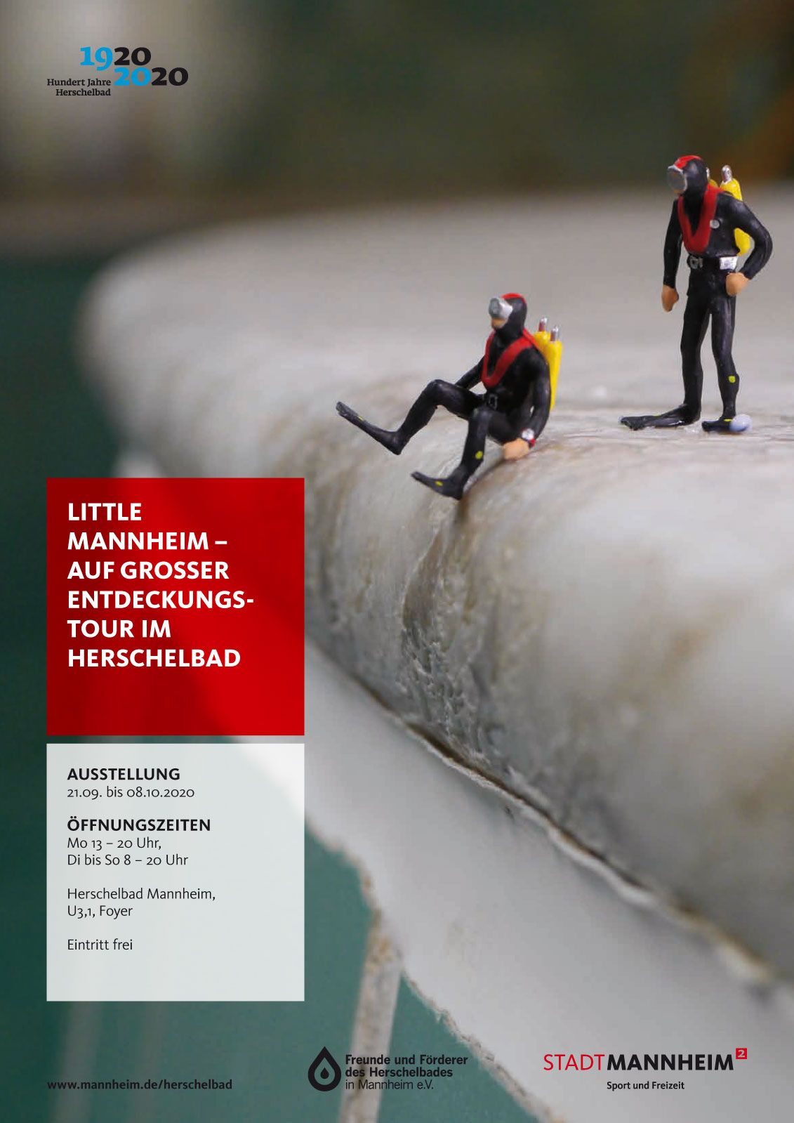 Ausstellungsplakat der Ausstellung Little Mannheim, die von 21.09. bis 08.10.2020 im Herschelbad zu den üblichen Öffnungszeiten besucht werden kann.