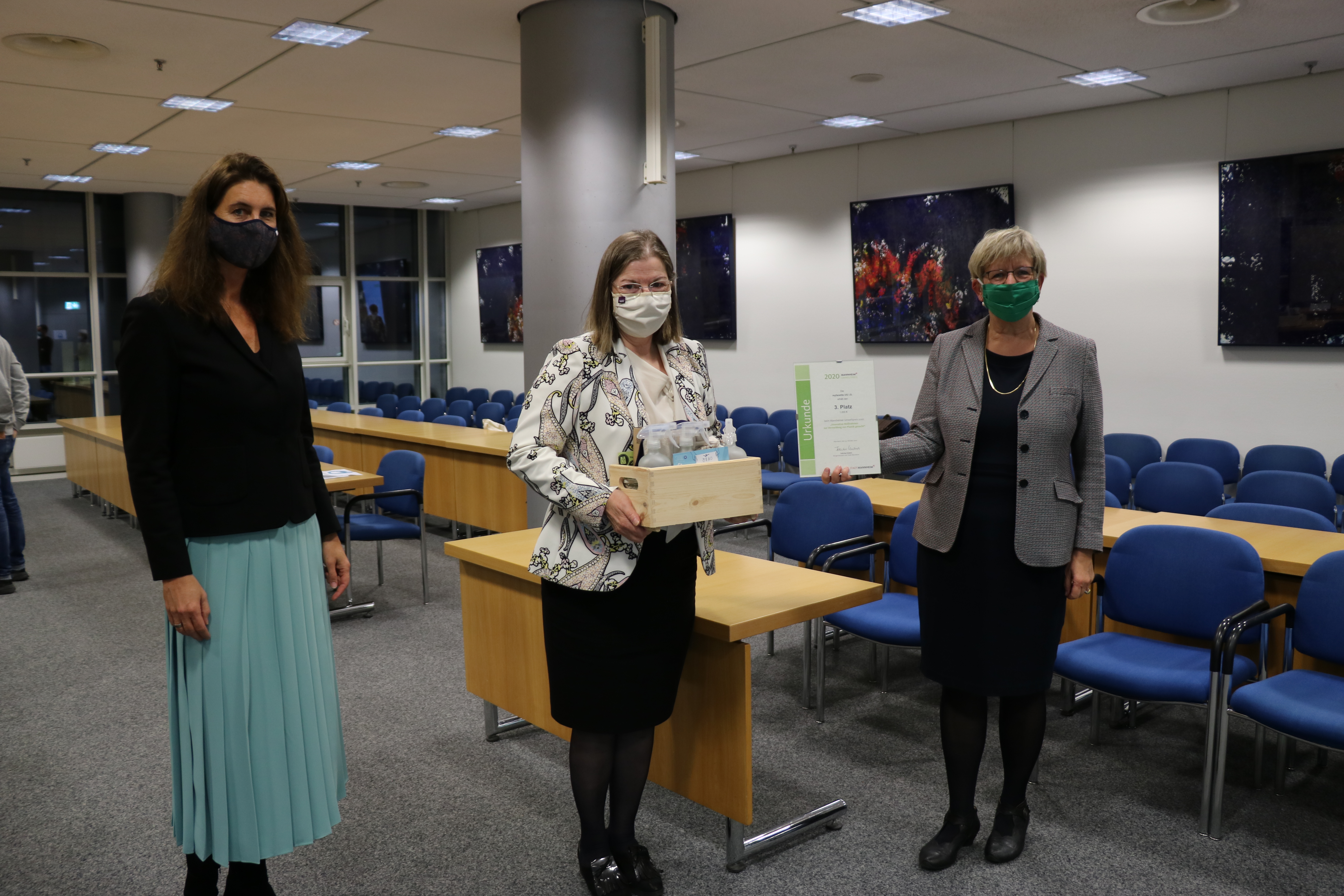 Prof. Dr. Diana Pretzell, neue Bürgermeisterin für Bürgerservice, Klima- und Umweltschutz sowie technische Betriebe und Ralf Eisenhauer, neuer Bürgermeister für Bauen, Planung, Verkehr und Sport, zusammen mit OB Dr. Peter Kurz