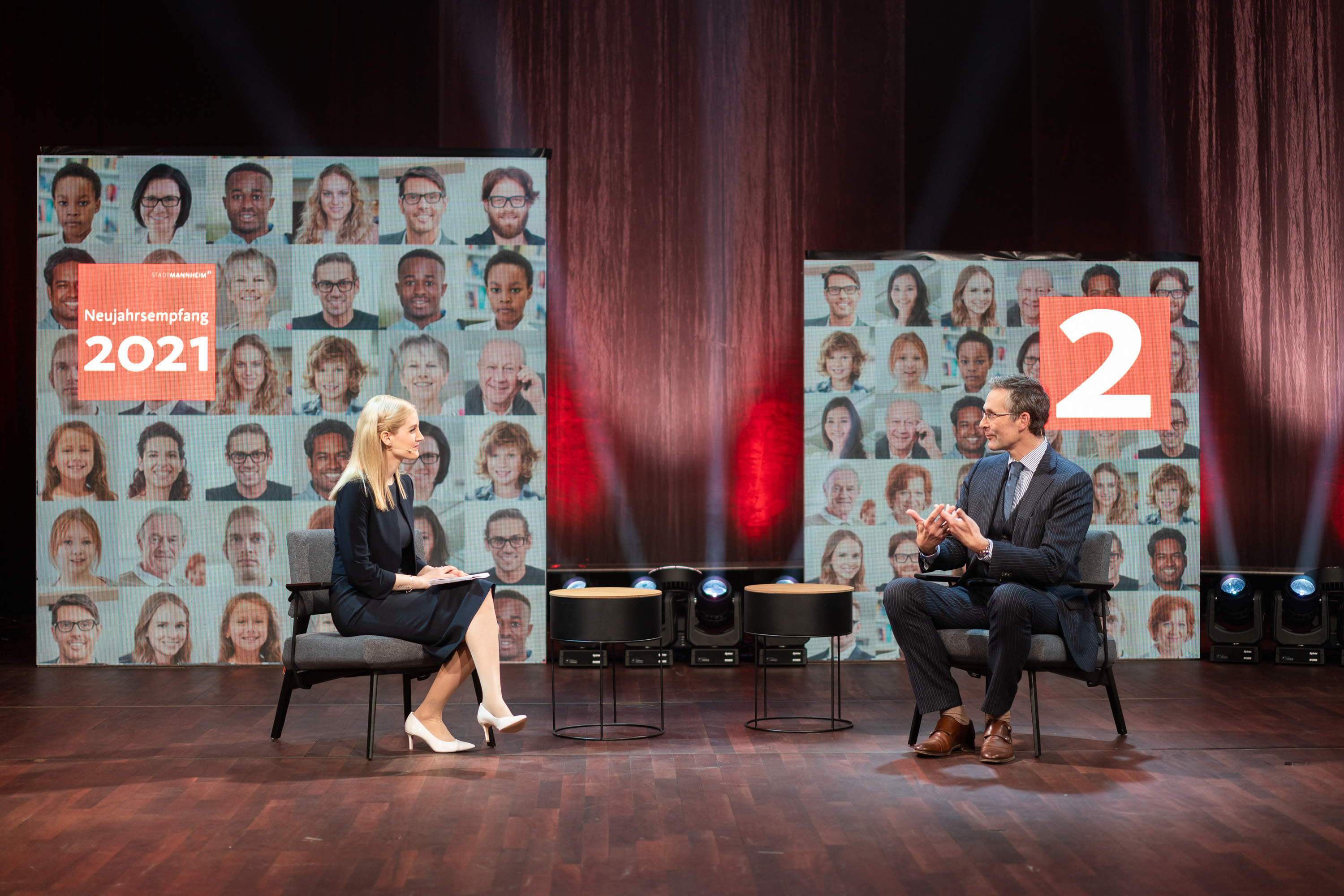 Anstelle der gewohnten Festrede führte Moderatorin Carina Junginger ein Gespräch mit dem Direktor des Zentralinstituts für Seelische Gesundheit, Prof. Dr. Andreas Meyer-Lindenberg zum Thema „Corona und die Psyche. Was macht Corona mit uns Menschen?“
