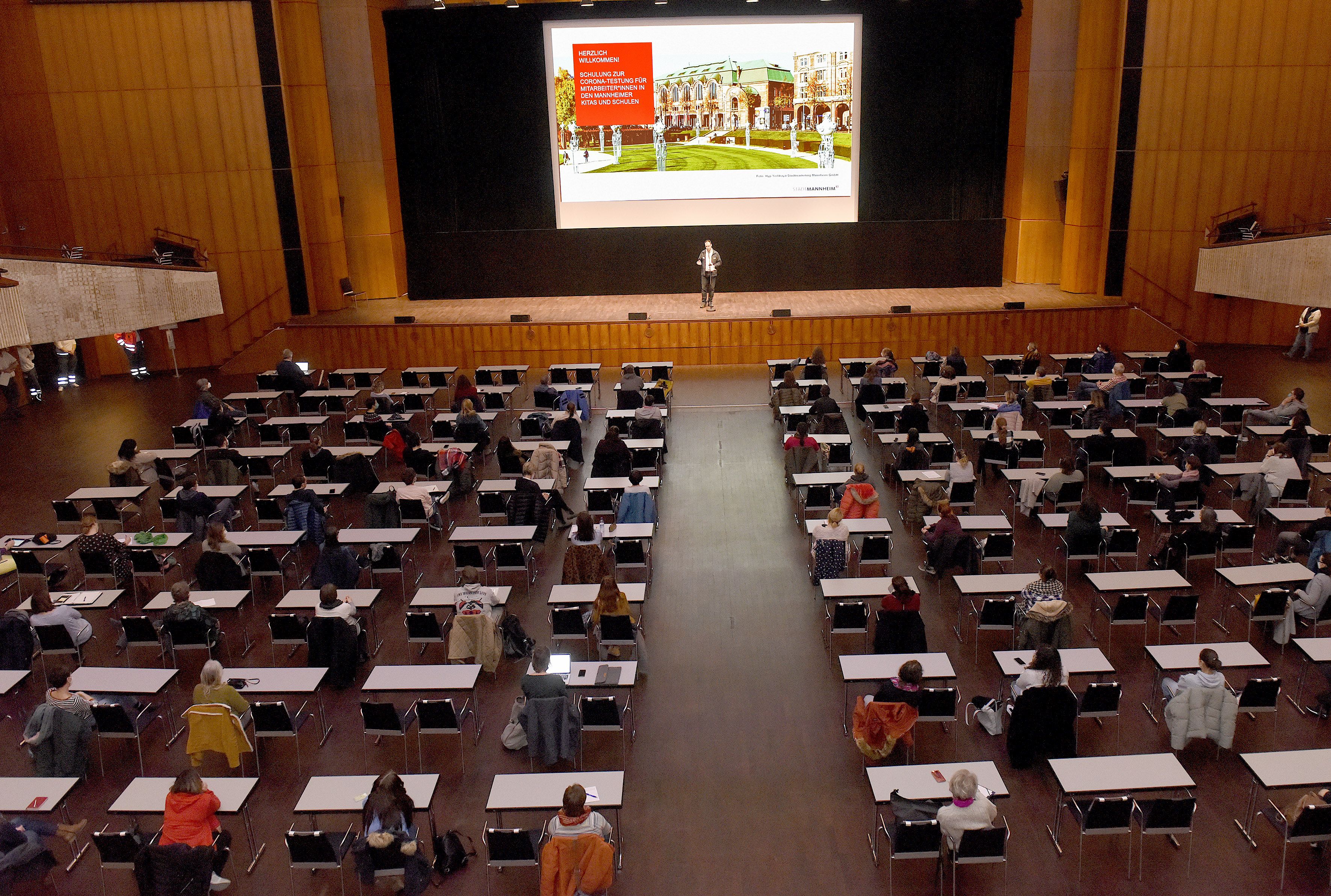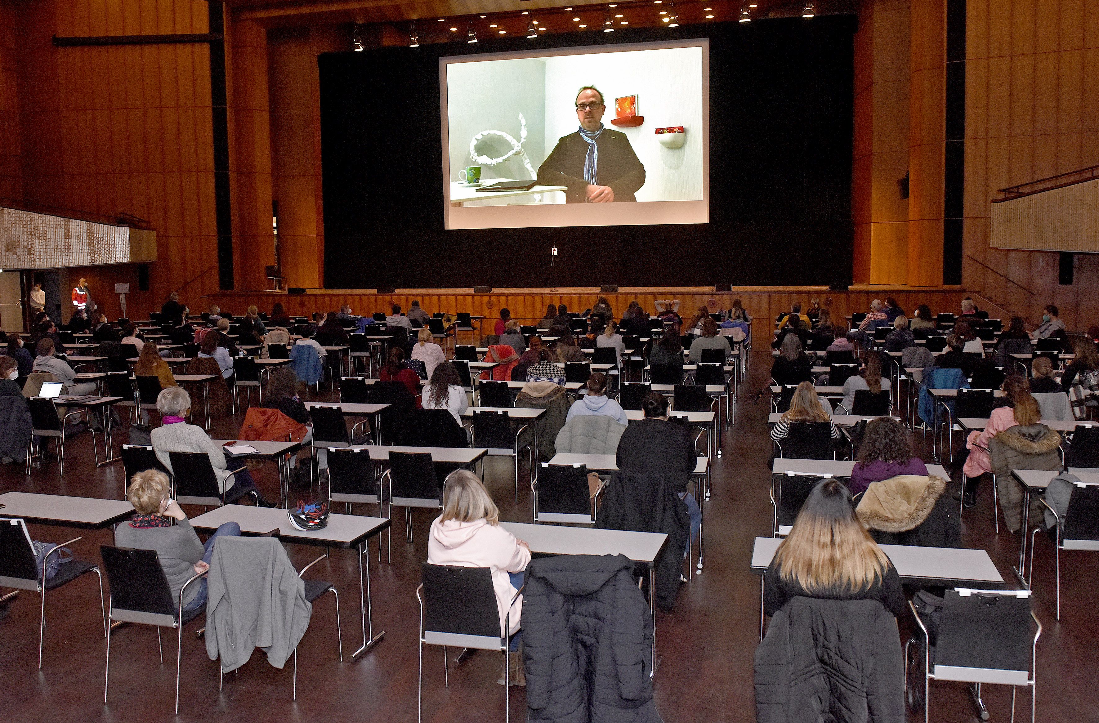 An zwei Tagen fanden am 18. und 19. Februar unter strengen Hygienauflagen Schulungen für zirka 800 Freiwillige statt, die in den Schulen und Kindertagesstätten ihre Kolleg*innen beim deren eigener Testung auf das Corona-Virus unterstützen und anleiten sollen. Angeboten wurden die Schulungen vom Deutschen Roten Kreuz (DRK).