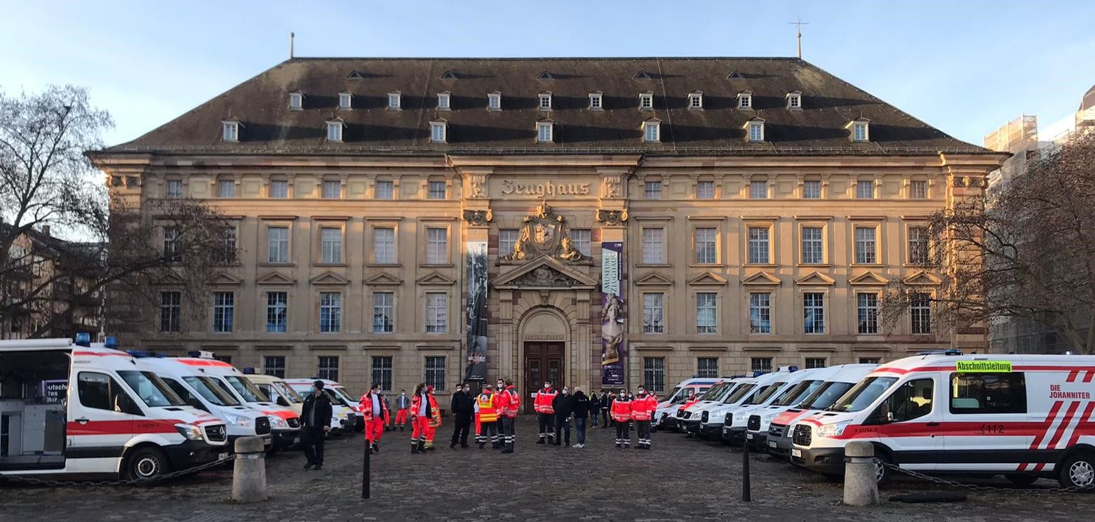Alle Mannheimer Hilfsorganisationen waren heute mit einer groß angelegten Auslieferungsaktion daran beteiligt, 80.000 Schnelltests für die Beschäftigen in Schulen und Kitas auzulieferen: die Deutsche Lebensrettungsgesellschaft (DLRG) und der Malteser Hilfsdienst mit je einem Fahrzeug, die Johanniter-Unfallhilfe (JUH) mit sechs und das Deutsche Rote Kreuz (DRK) mit sieben Fahrzeugen plus je einer Einsatzleitung sowie der Arbeiter-Samariter-Bund mit acht Wagen.