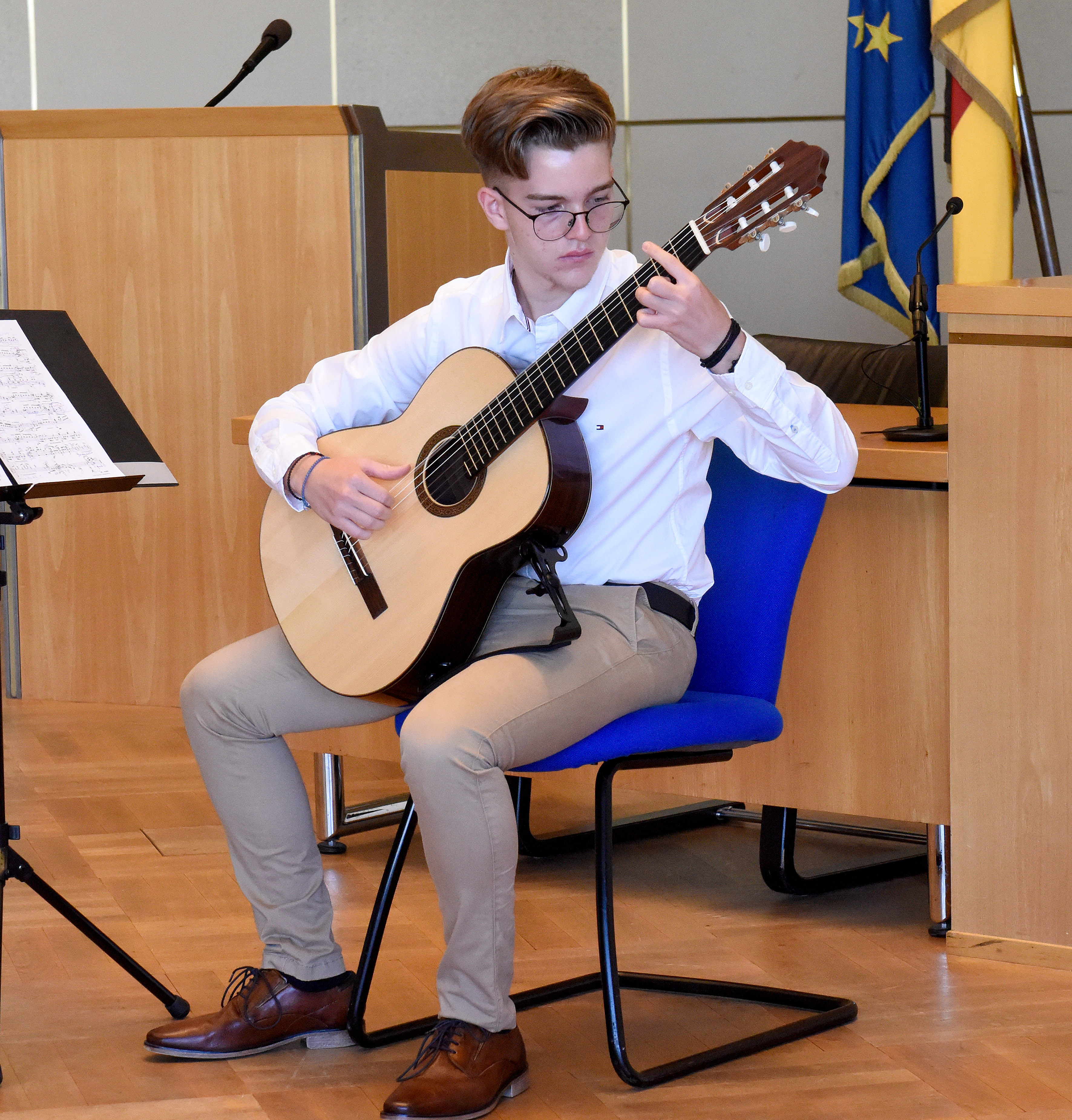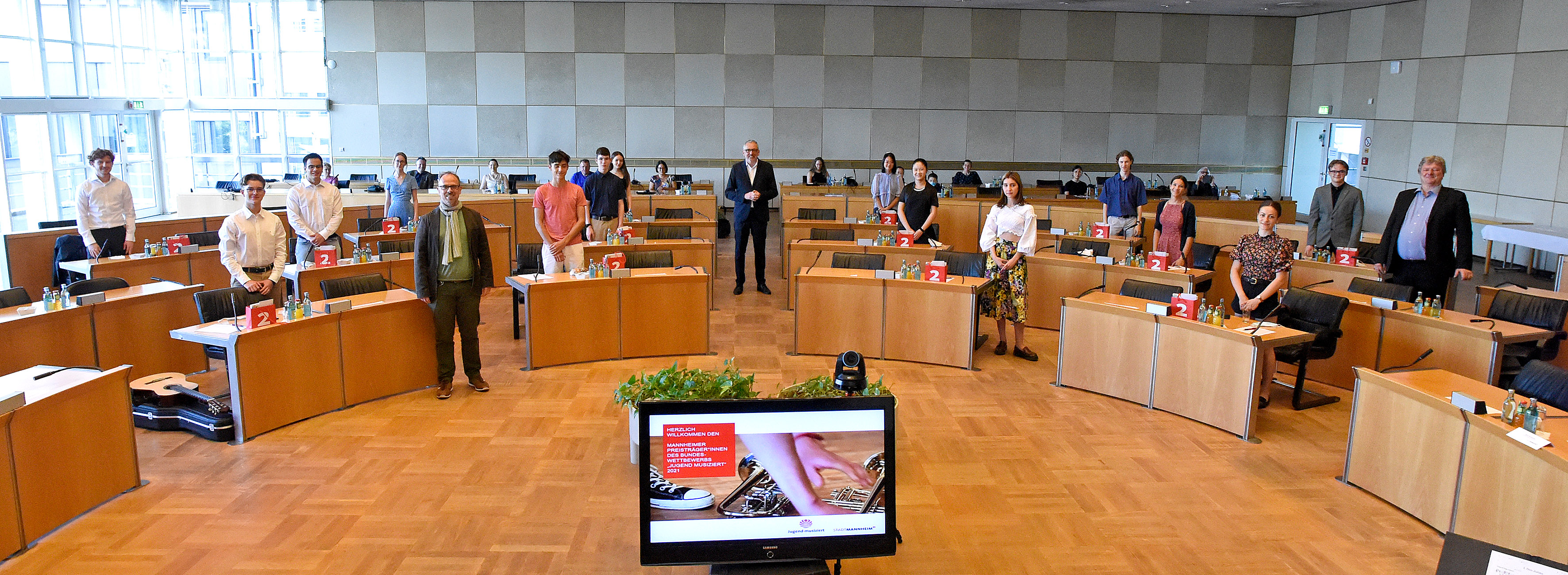 Unser Bild zeigt die Teilnehmerinnen und Teilnehmer zusammen mit Oberbürgermeister Dr. Peter Kurz, Bildungsbürgermeister Dirk Grunert und Bjoern Strangmann, Leiter der Musikschule Mannheim