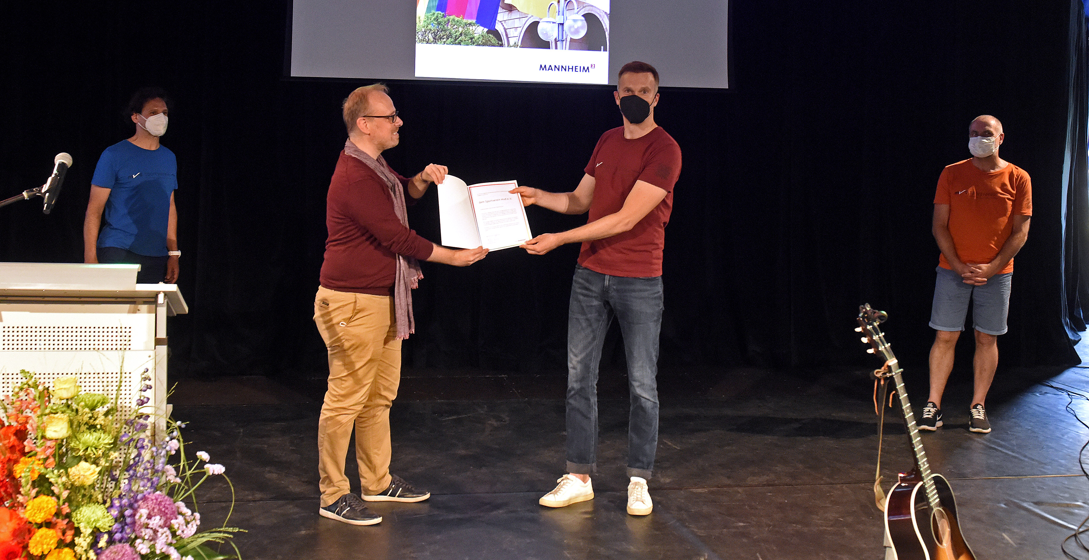 Zum 25. Jubiläum des Sportvereins mvd überreichte Bürgermeister Dirk Grunert dessen erstem Vorsitzenden, Markus Kellmann, eine Urkunde der Stadt Mannheim.