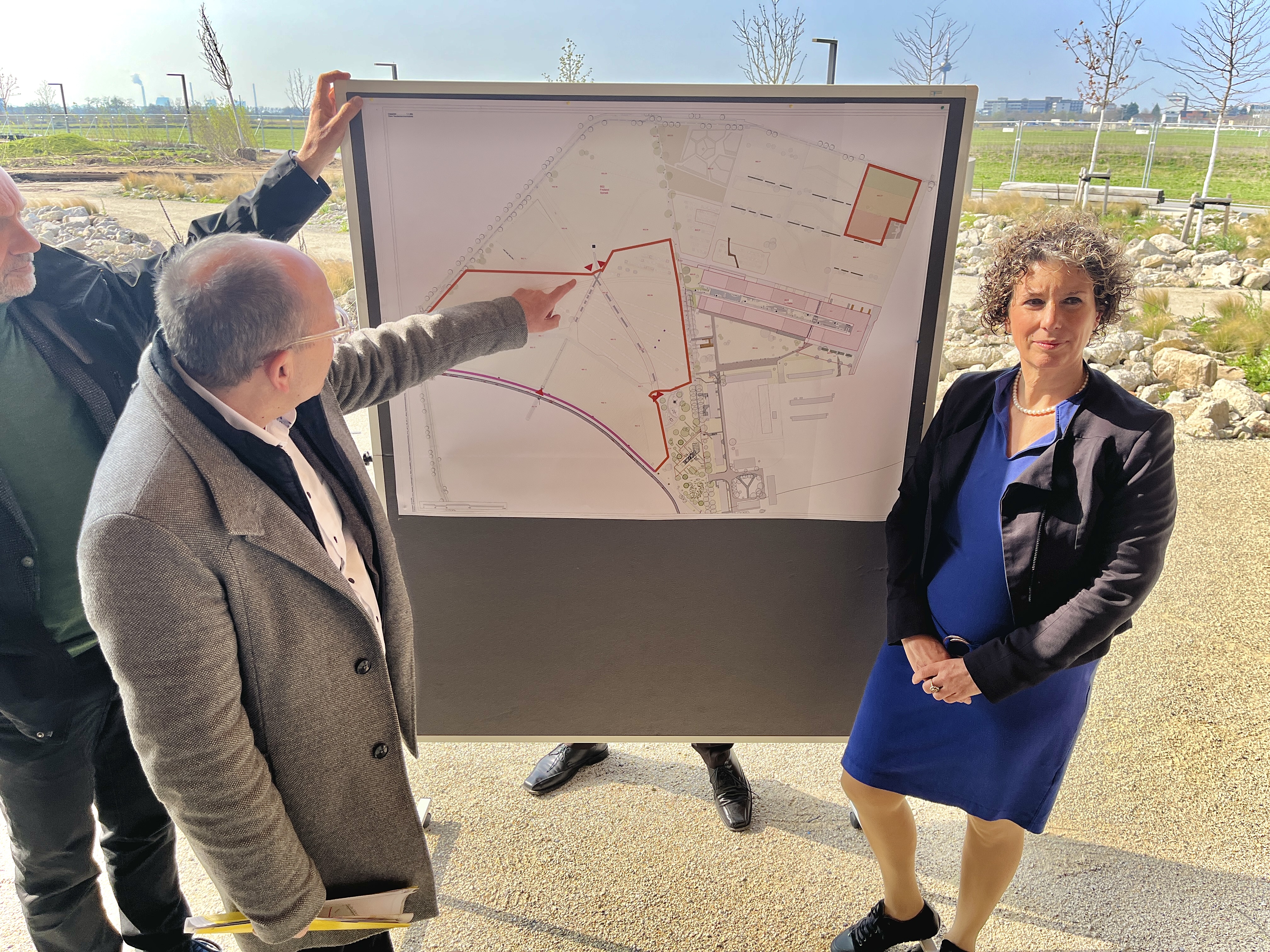 Oberbürgermeister Christian Specht erklärt, wo der Zaun entlang führt