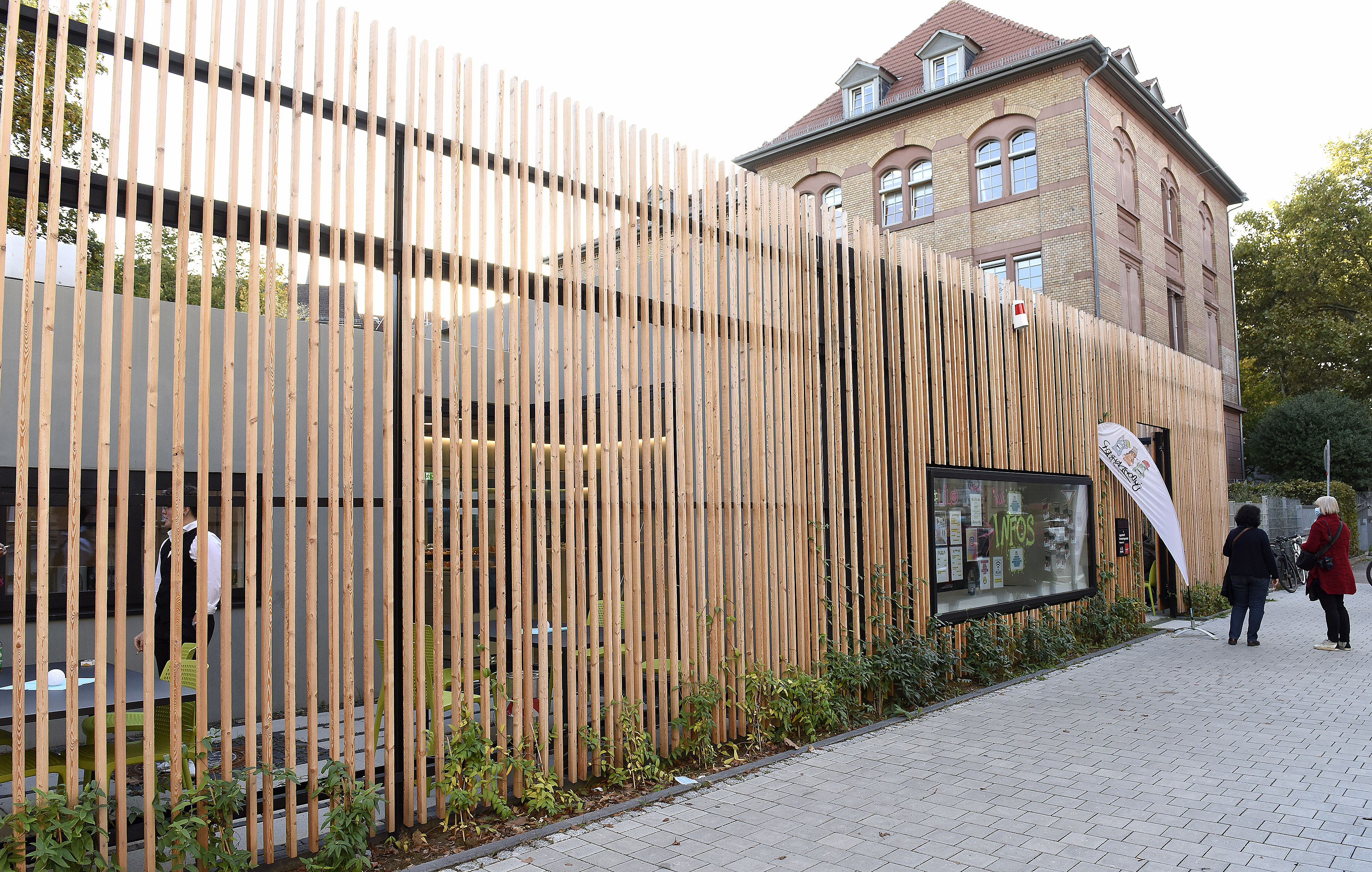 Das Bild zeigt eine Teilansicht des Gartens. Es zeigt eine Laubhütte (Sukka), die in der jüdischen Religion und Tradition eine wichtige Rolle spielt. Die Idee für die Laubhütte hat Mannheims israelische Partnerstadt Haifa eingebracht.