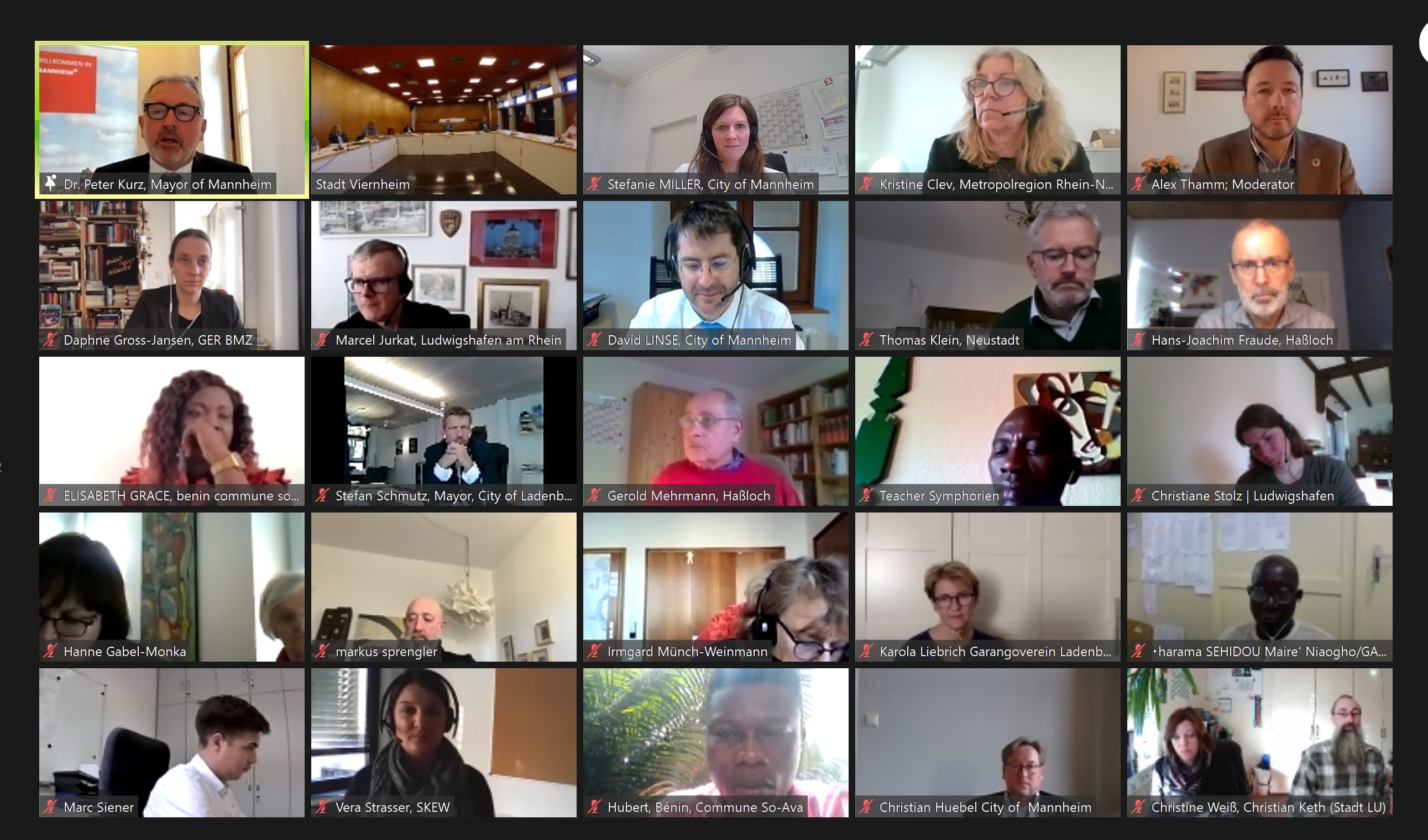 18 Städte aus 8 Ländern verteilt auf 4 Kontinenten sind der Einladung der Metropolregion Rhein-Neckar, vertreten durch den Verband Region Rhein-Neckar, und der Stadt Mannheim gefolgt, um an der virtuellen SDG-Partnerschaftskonferenz vom 9. bis 11. November teilzunehmen. Ziel der Konferenz war es, die partnerschaftliche Zusammenarbeit und den Dialog zur Agenda 2030 in der Metropolregion mit Partnerkommunen aus aller Welt zu fördern und Ideen und Aktivitäten zur Umsetzung der globalen Nachhaltigkeitsziele (Sustainable Developement Goals – SDGs) durch konkrete Projekte und Initiativen der kommunalen Entwicklungszusammenarbeit zu entwickeln