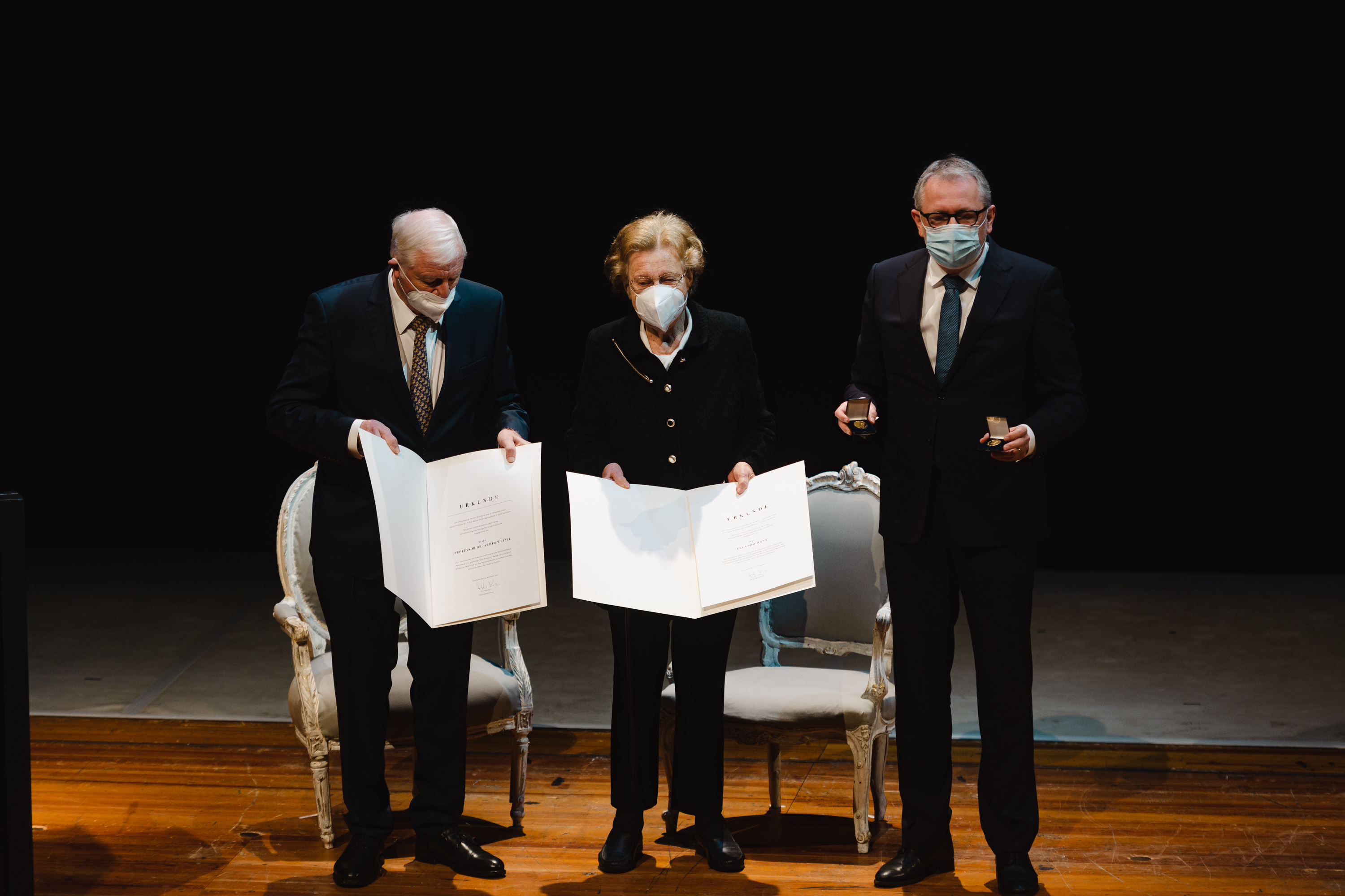Unser Bild zeigt von links nach rechts: Oberbürgermeister D. Peter Kurz, Dr. Anne Mahn, die Kuratorin der Ausstellung und den Direktor des TECHNOSEUM, Prof. Dr. Hartwig Lüdtke