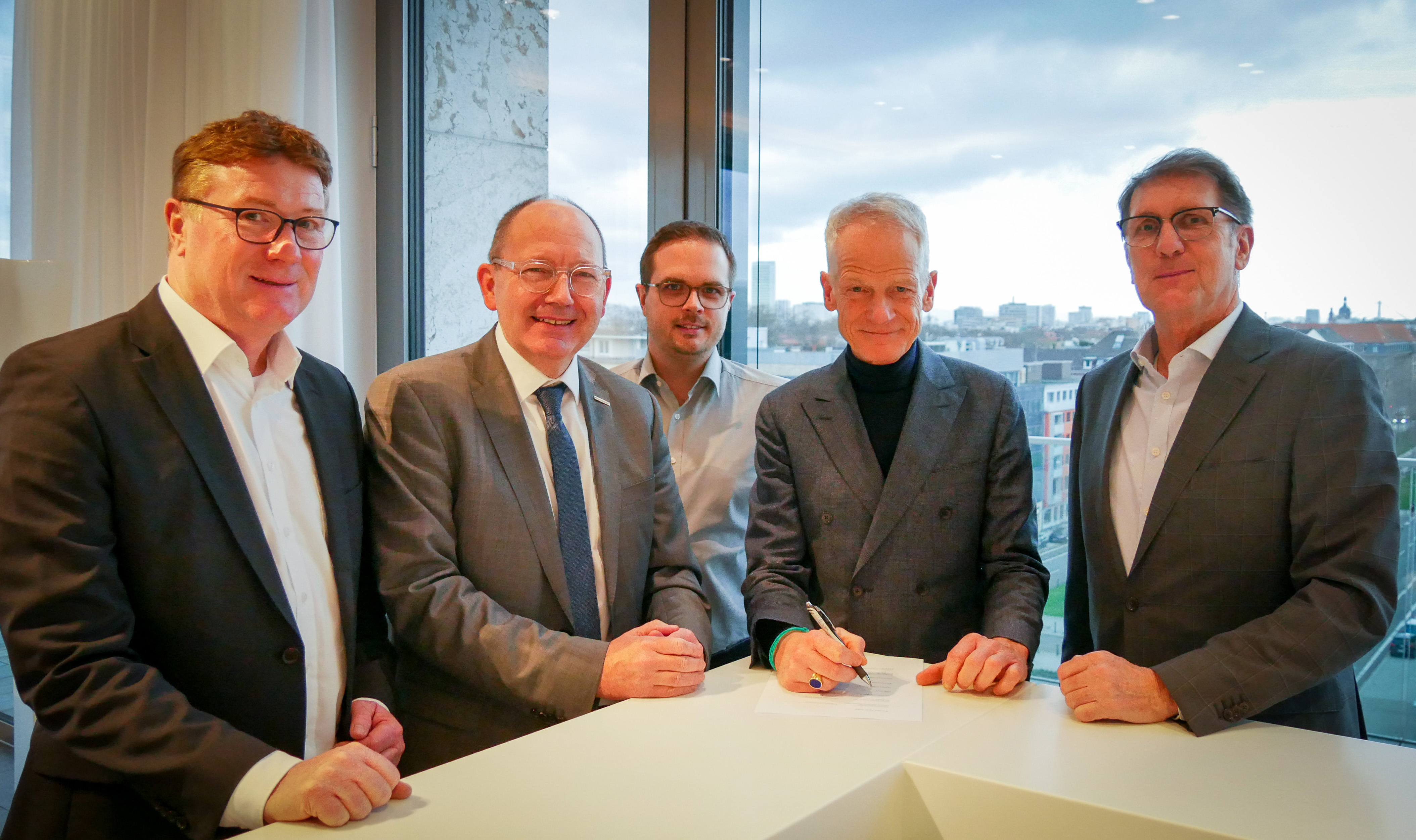 vlnr: Bürgermeister Ralf Eisenhauer, Bürgermeister Michael Grötsch, Erste Bürgermeisterin Prof. Dr. Diana Pretzell, Thorsten Riehle, Oberbürgermeister Christian Specht, Bürgermeister Dirk Grunert, Bürgermeister Dr. Volker Proffen