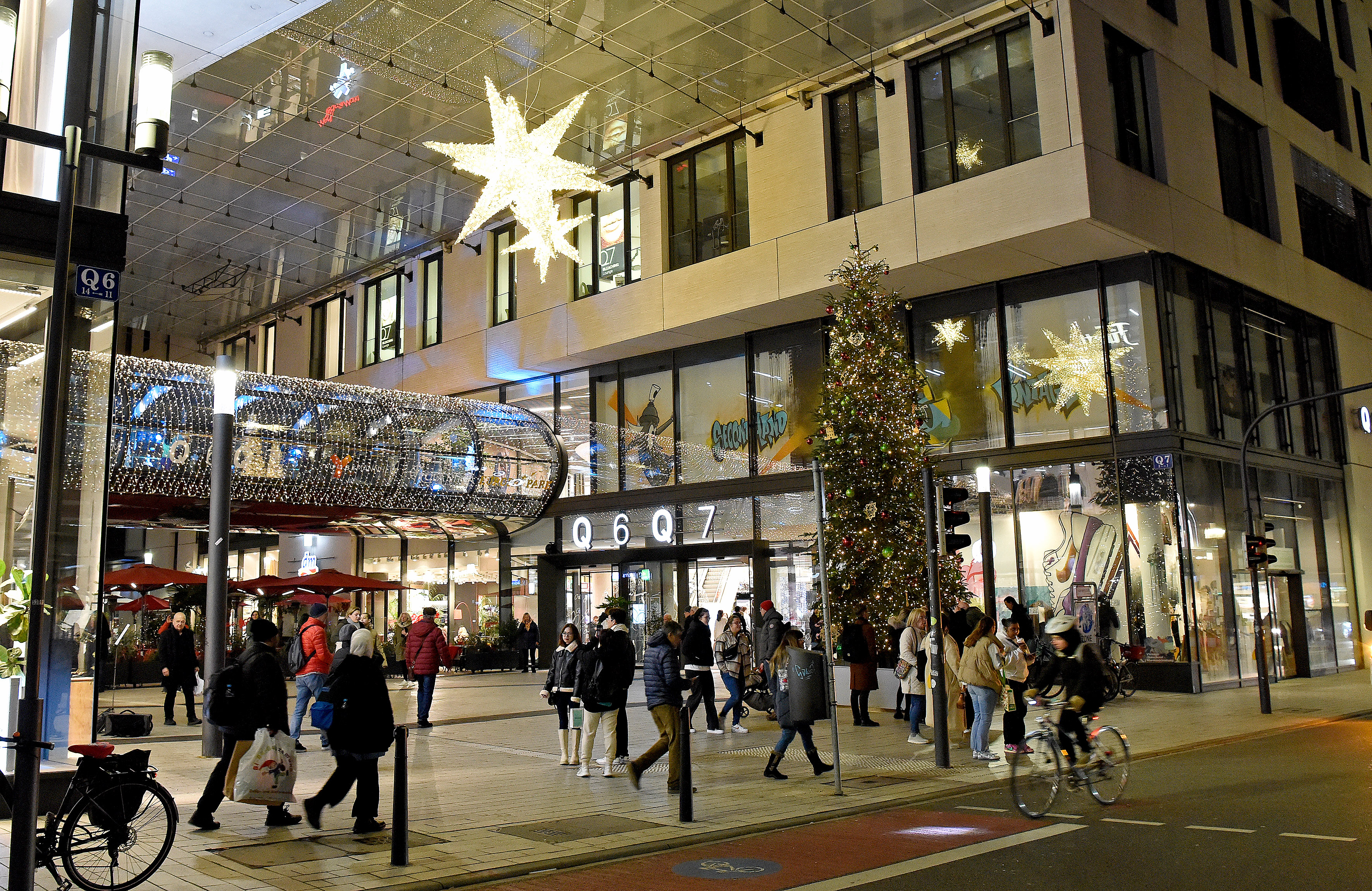 Weihnachtsbeleuchtung auf Münzplatz im Quartier Q 6 Q 7