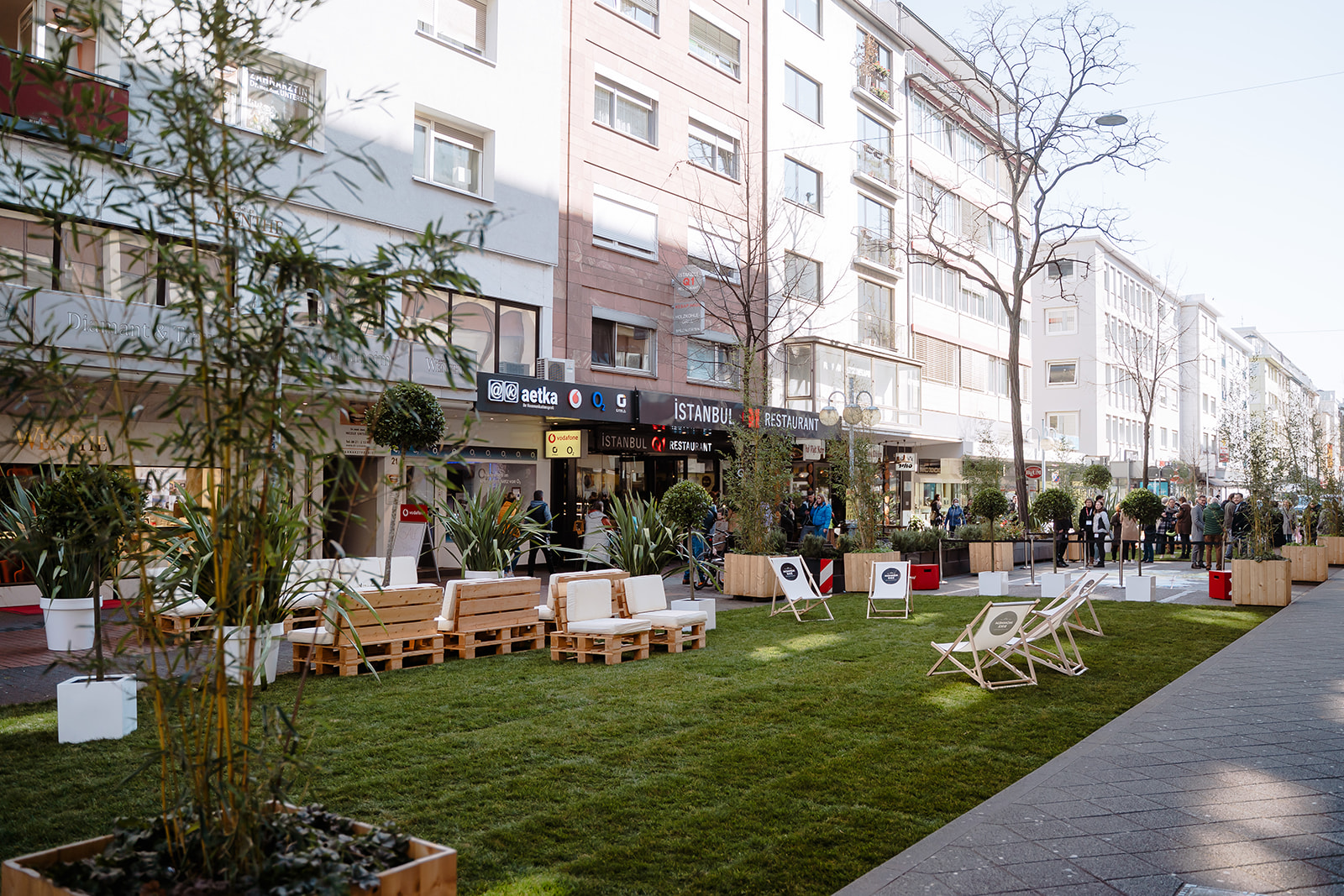 In der Fressgasse ist über die Breite Straße eine neue Fußgängerzone entstanden. Beim Eröffnungsevent am 11. und 12. März lud das Stadtmarketing zum Verweilen und Informieren ein.