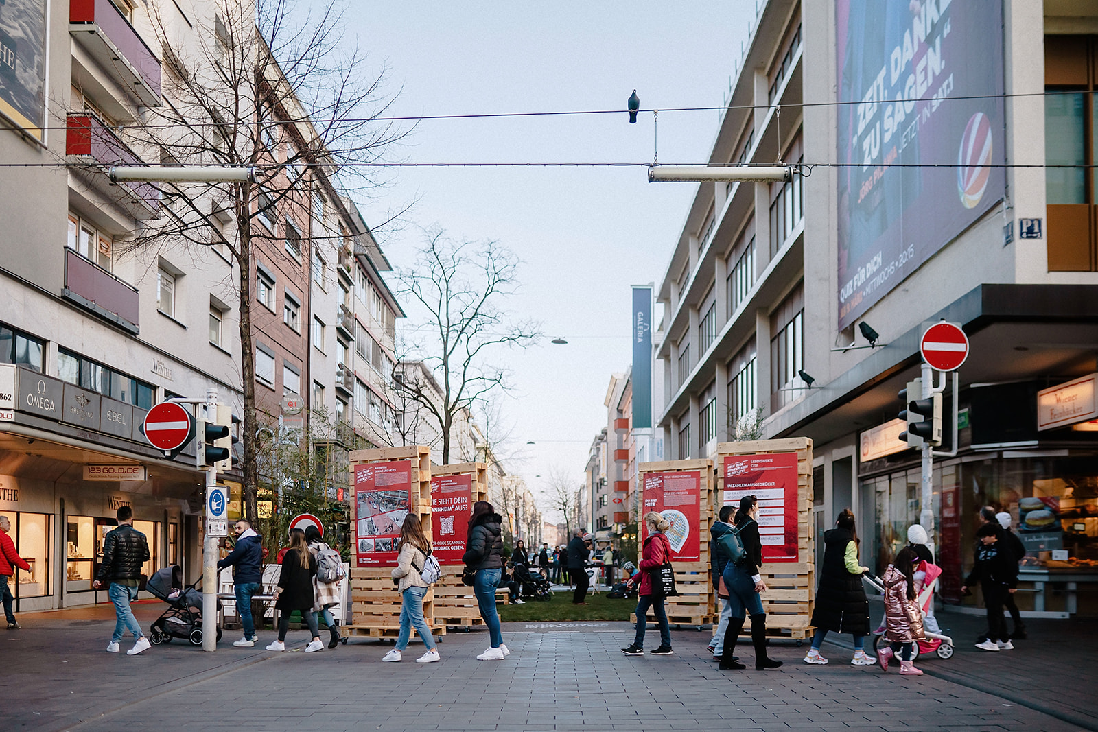 Neue Wege – mehr erleben in der City: Zum Eröffnungsevent der neuen Verkehrsführung am 11. und 12. März sind Interessierte eingeladen, sich an Ausstellungstafeln zu informieren und die neue Fußgängerzone in der Fressgasse zu erleben.