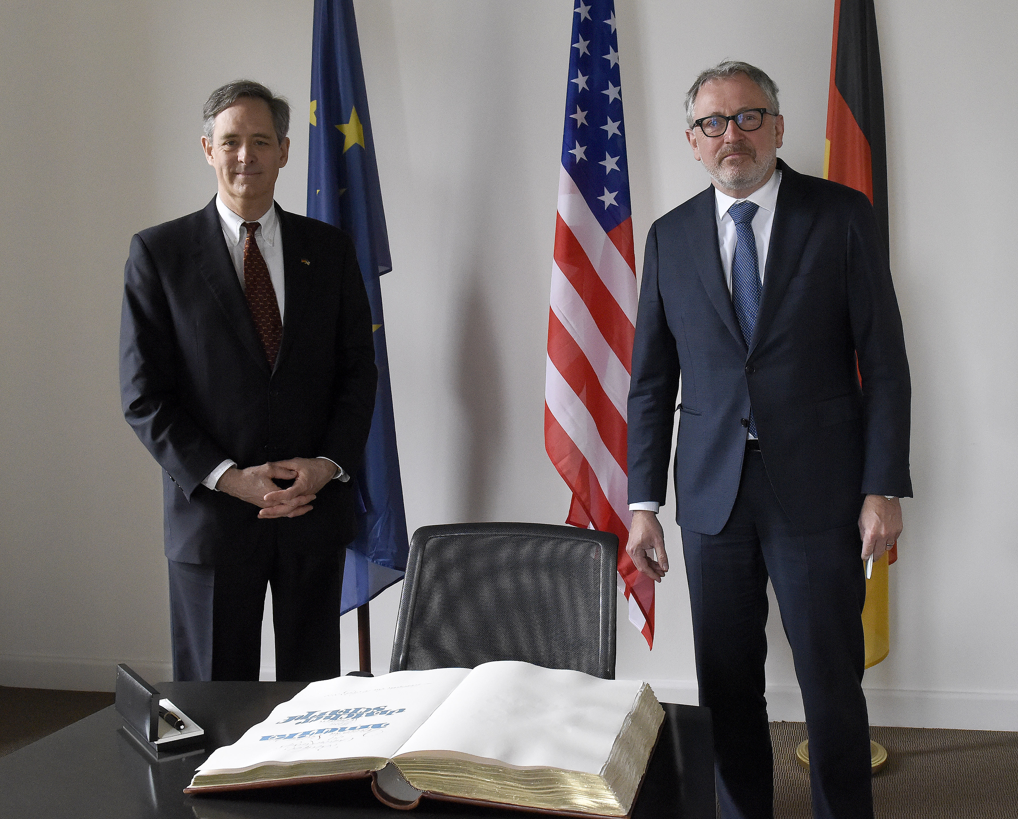 Oberbürgermeister Dr. Peter Kurz (rechts) hat den US-amerikanischen Generalkonsul Norman Thatcher Scharpf zu dessen Antrittsbesuch im Rathaus empfangen.