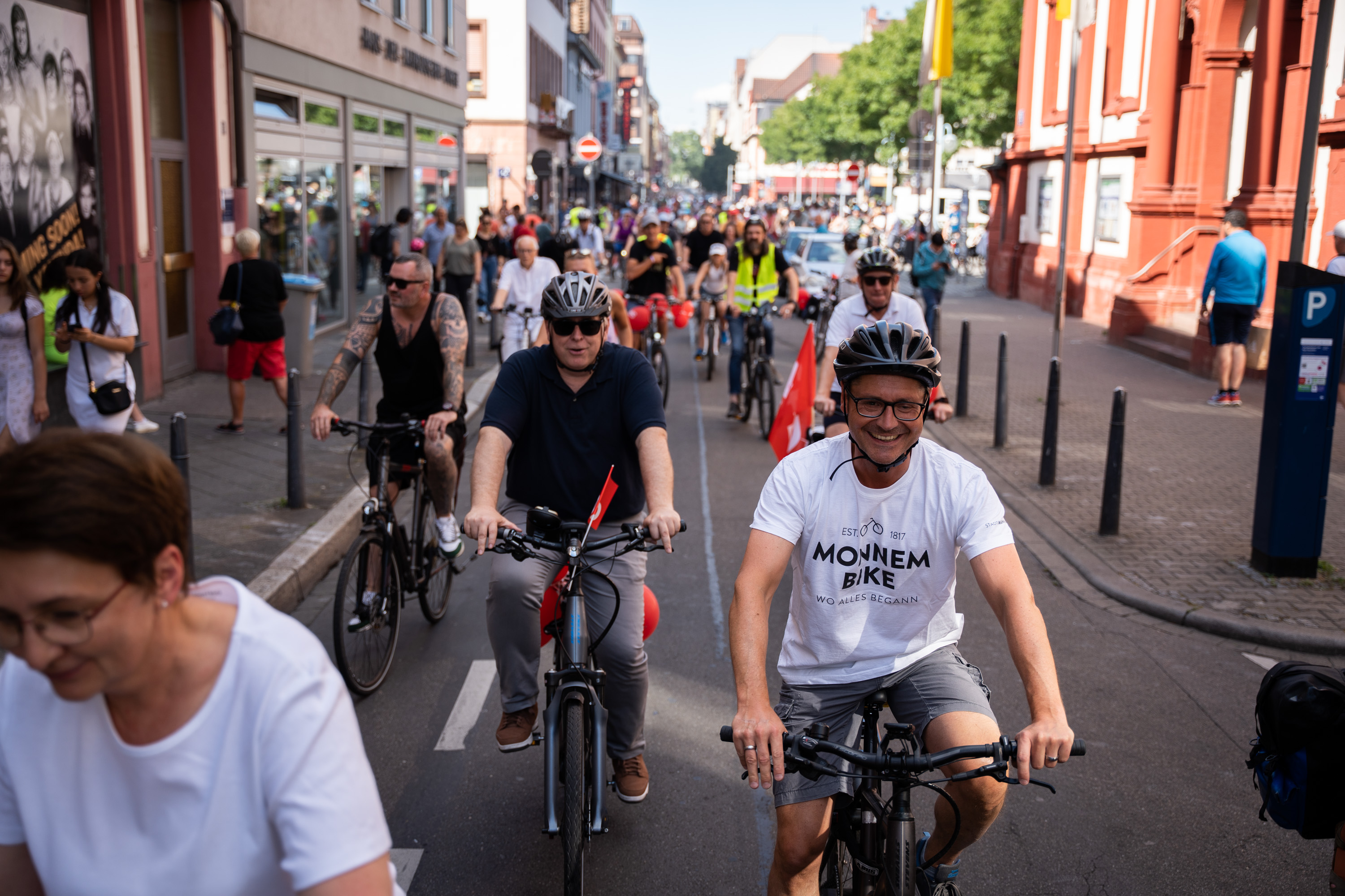 Der Abschluss von "Monnem Bike - das Festival" bildete wieder eine Radparade von Initiator und Organisator Gerhard Fontagnier, an der auch Bürgermeister Ralf Eisenhauer (rechts) teilnahm.