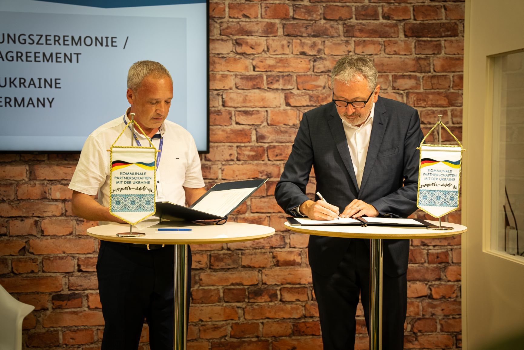 Heute (28.06.2022) haben Oberbürgermeister Dr. Peter Kurz und der Bürgermeister der Stadt Czernowitz, Roman Klichuk, den Städtepartnerschaftsvertrag im Rahmen einer Zeremonie während des World Urban Forums im polnischen Kattowitz unterzeichnet.