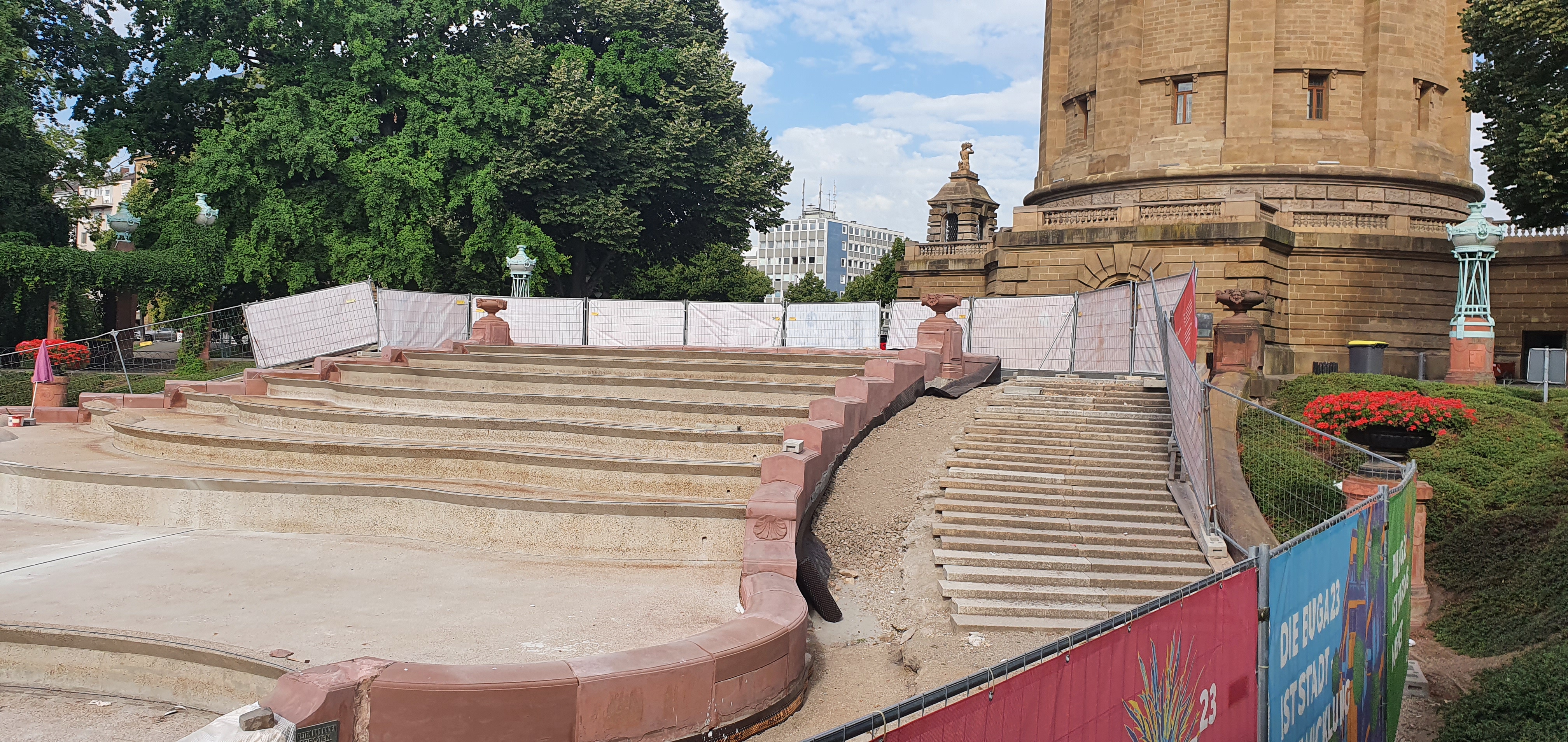 Die Fontänenanlage am Wasserturm wird bis zur Buga 2023 saniert.