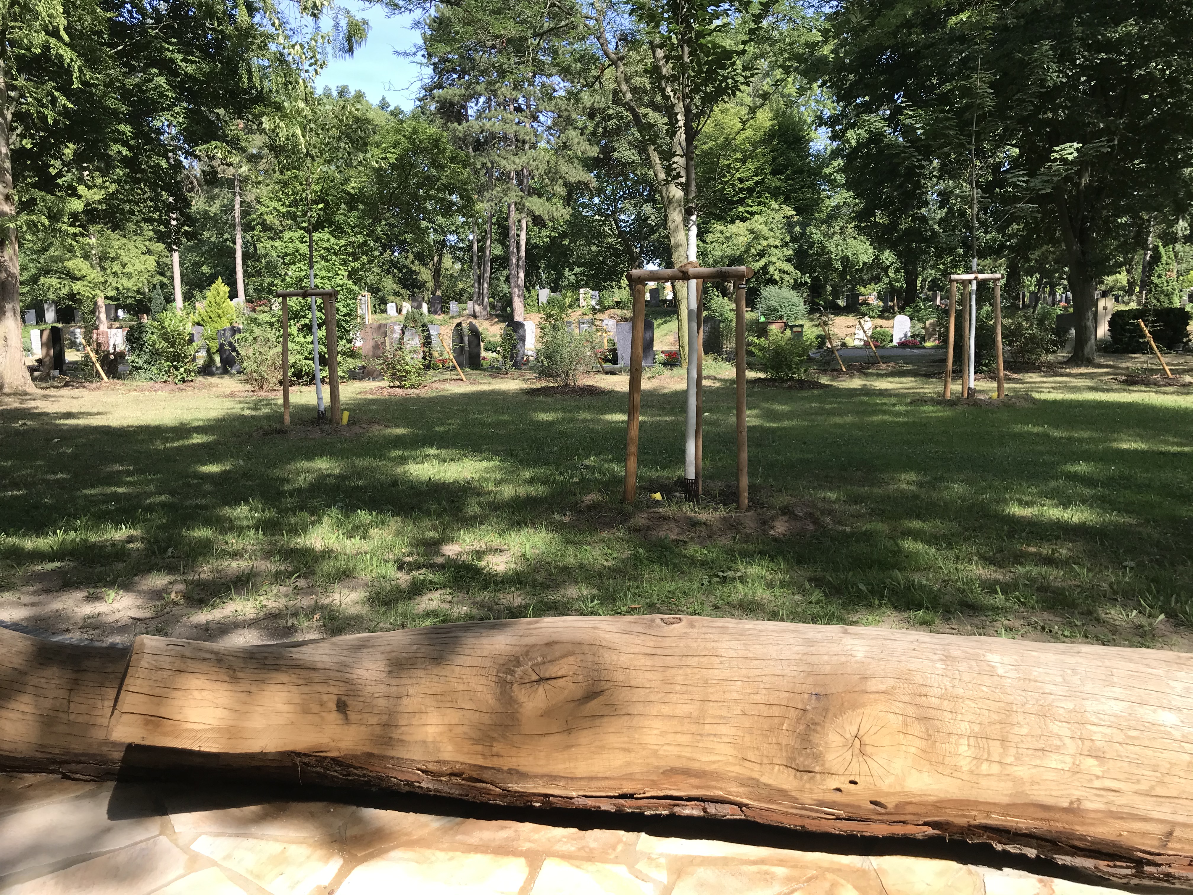 Bürgermeisterin Prof. Dr. Diana Pretzell und Eigenbetriebsleiter der Friedhöfe Andreas Adam vor dem neuen Baumgrabfeld auf dem Friedhof in Käfertal