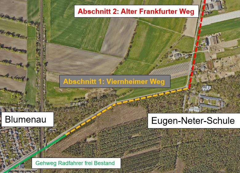 Der neue Geh- und Radweg an der Kreisstraße 9754 zur Eugen-Neter-Schule wird in zwei Bauabschnitten realisiert.