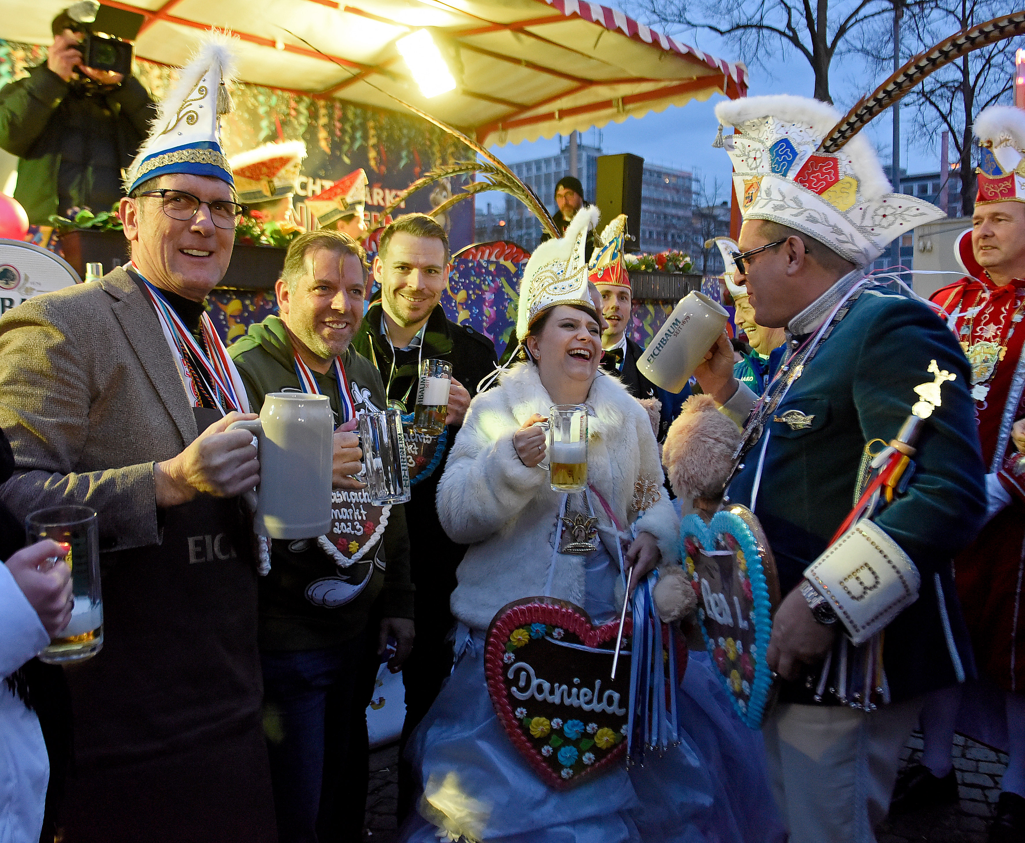 Erster Bürgermeister und ÖPNV-Dezernent Christian Specht, Oberbürgermeister Dr. Peter Kurz, Martin in der Beek, Technischer Geschäftsführer der rnv GmbH, sowie Marcus Geithe, Geschäftsführer der MV Mannheimer Verkehr GmbH, bei der Inbetriebnahme der nun barrierefreien Haltestelle Rathaus/rem.