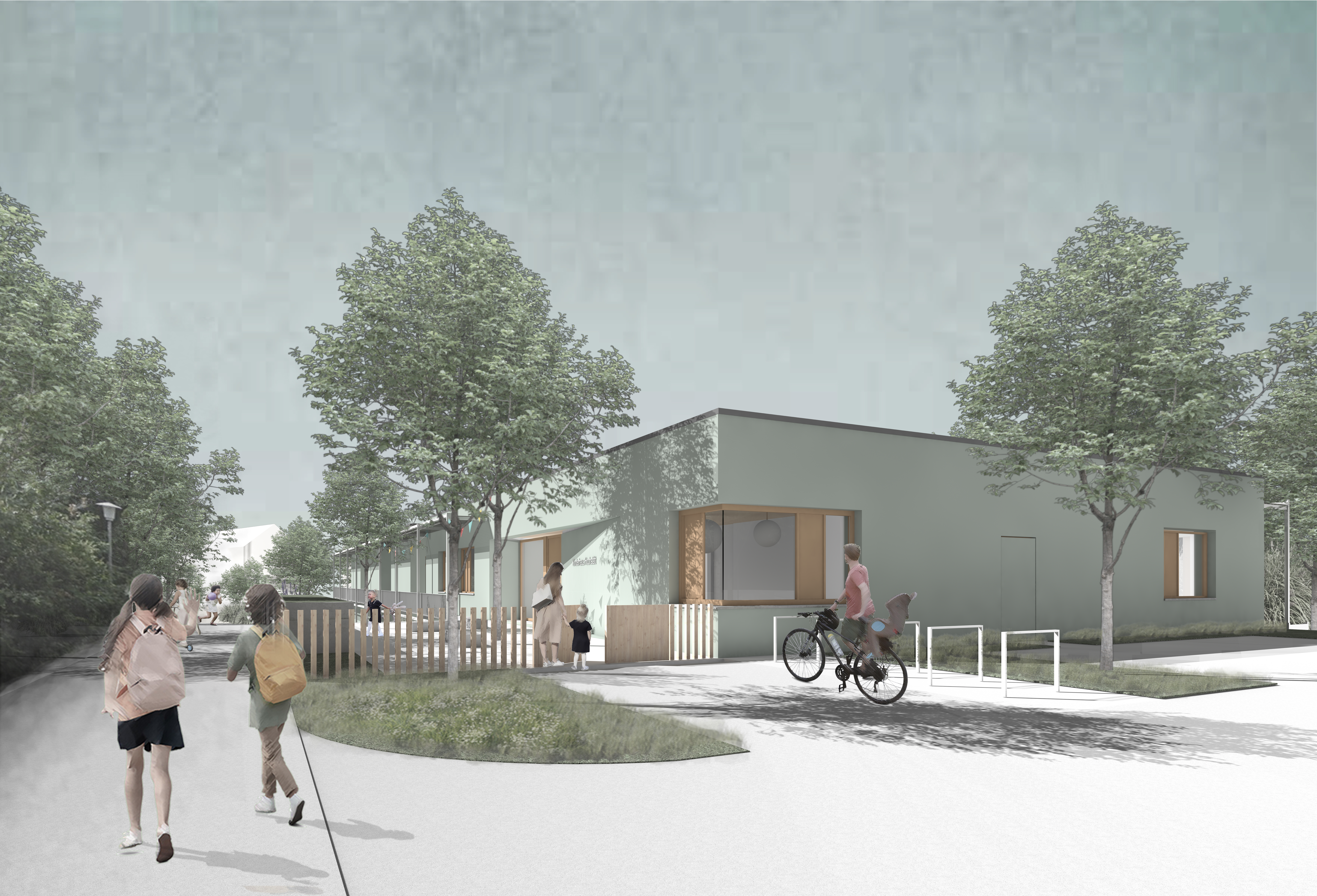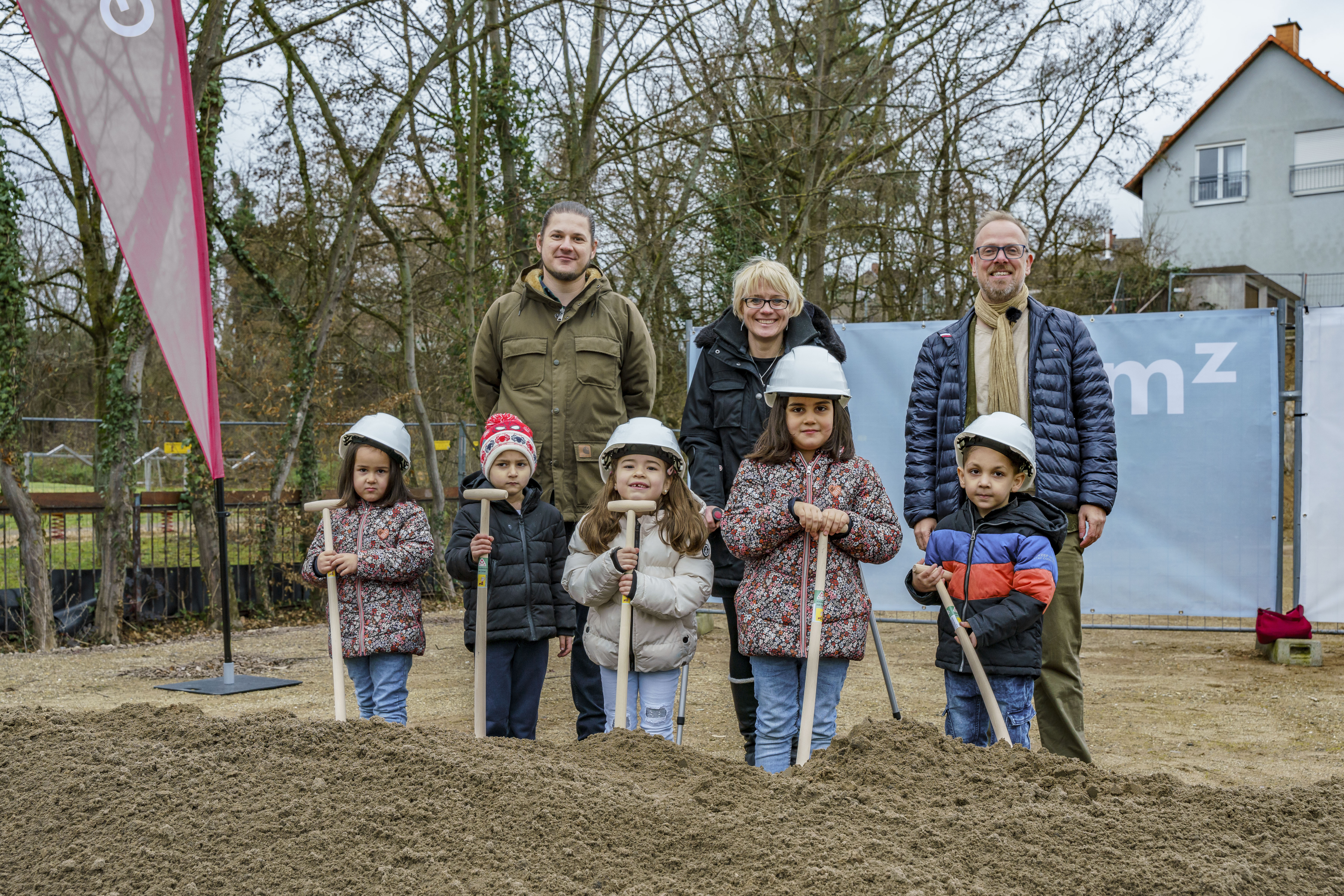 Kinder der Kita mit ihrem Betreuer und Einrichtungsleiterin Lykke Nielsen