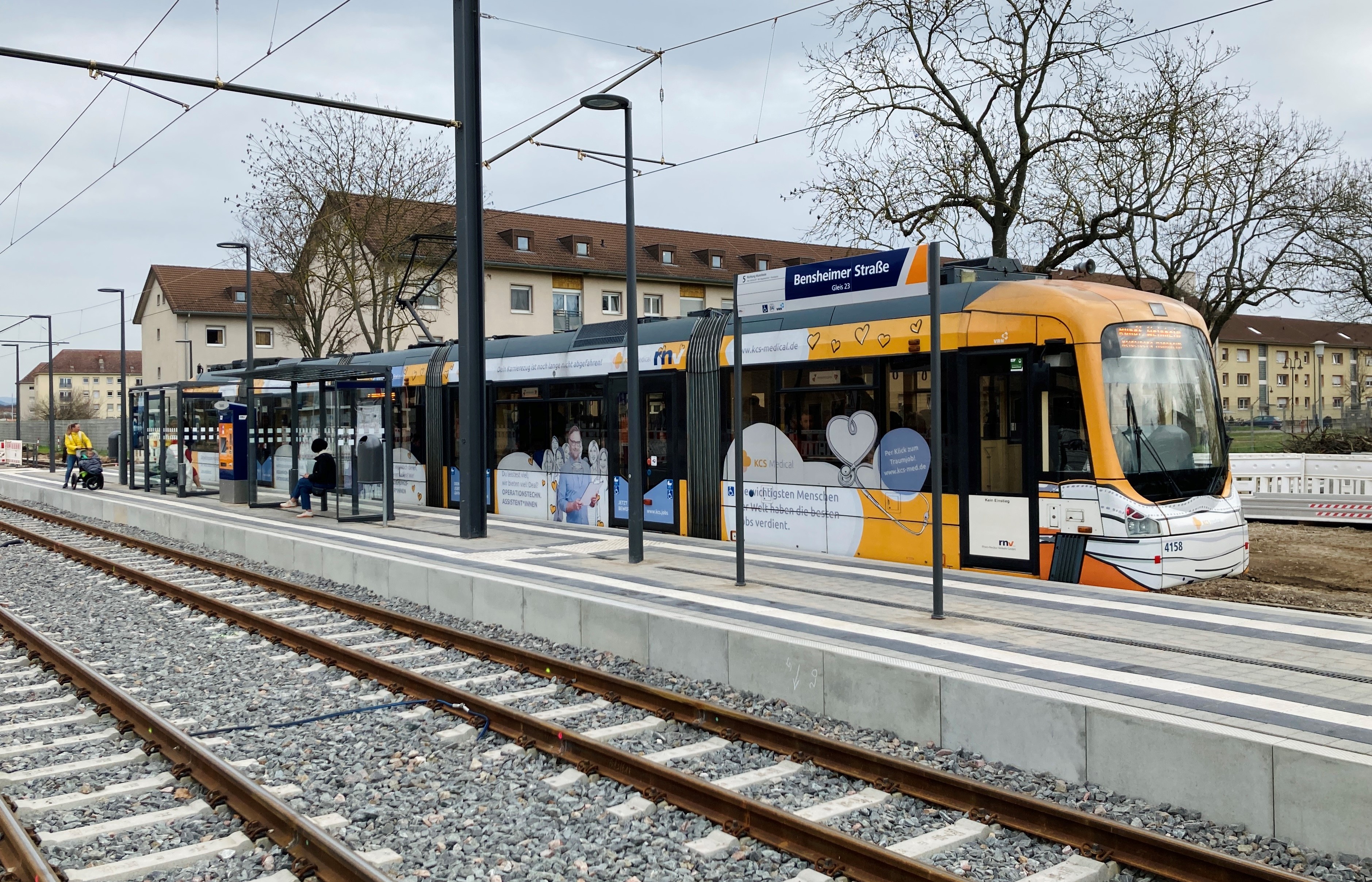 Nach rund acht Monaten Bauzeit ist der Haltepunkt Bensheimer Straße seit 20. März wieder für den regulären, zweigleisigen Betrieb der Linie 5 freigegeben.