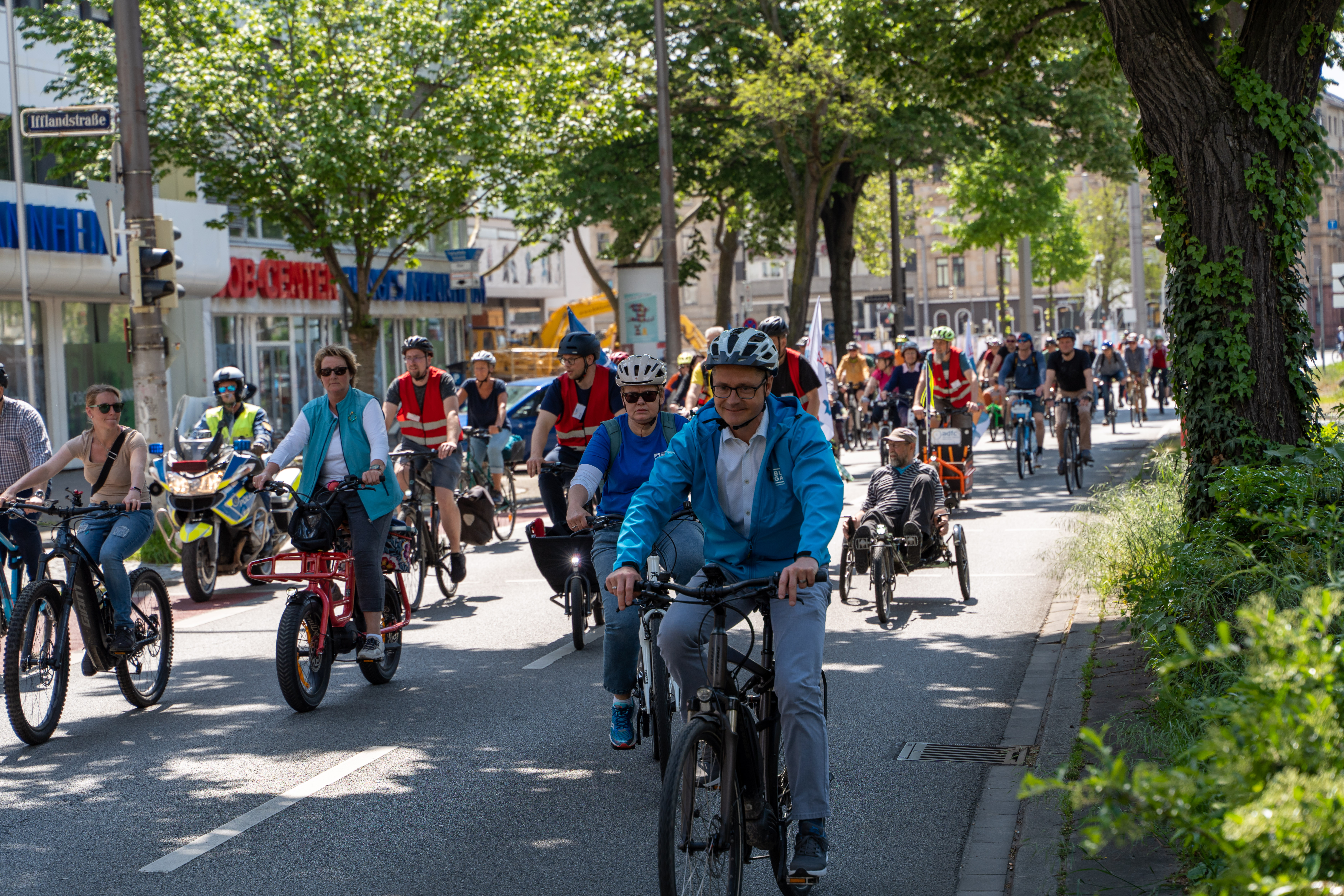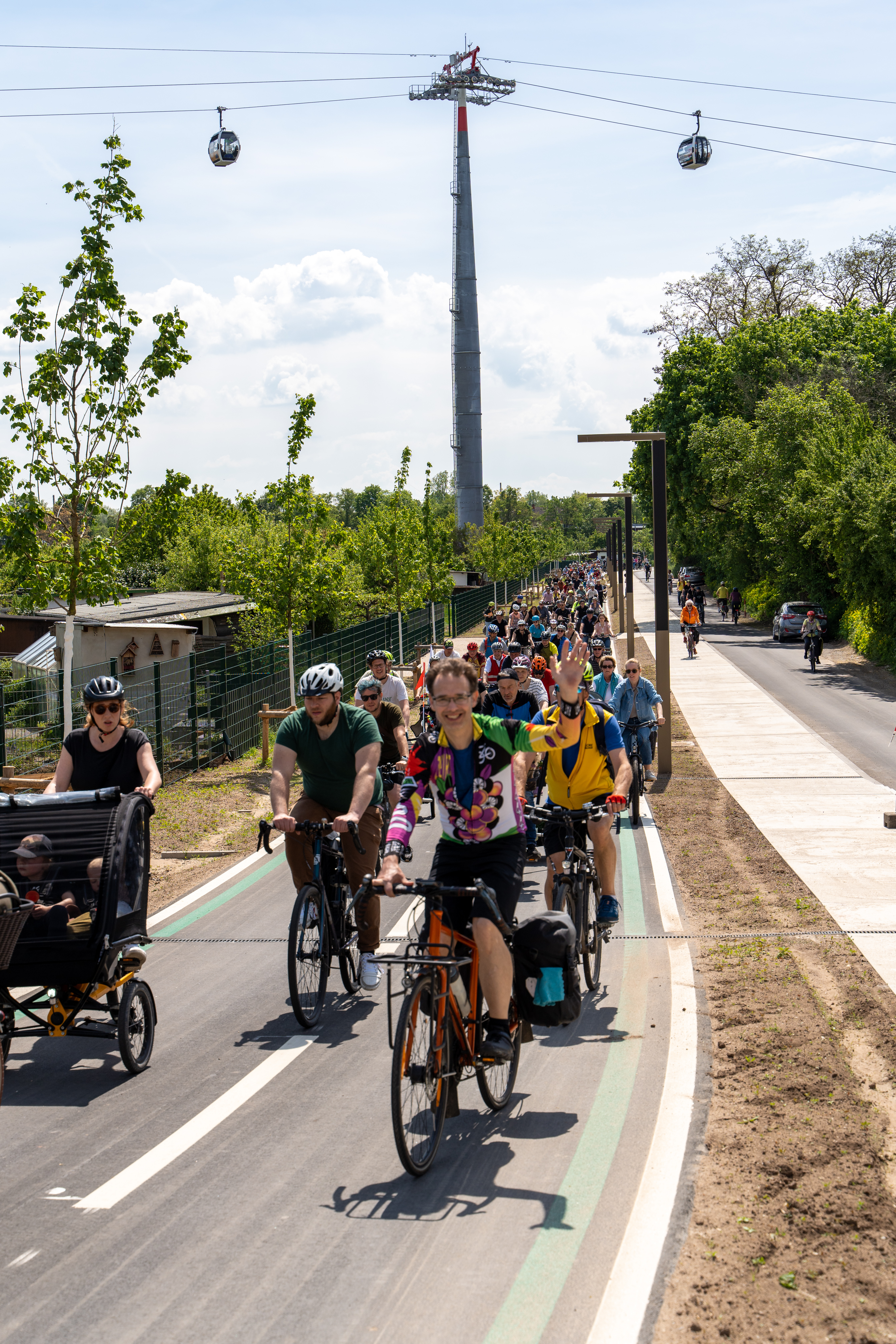 Die Radparade zum Auftakt von STADTRADELN 2023 führte vom Wasserturm zur Bezirkssportanlage.