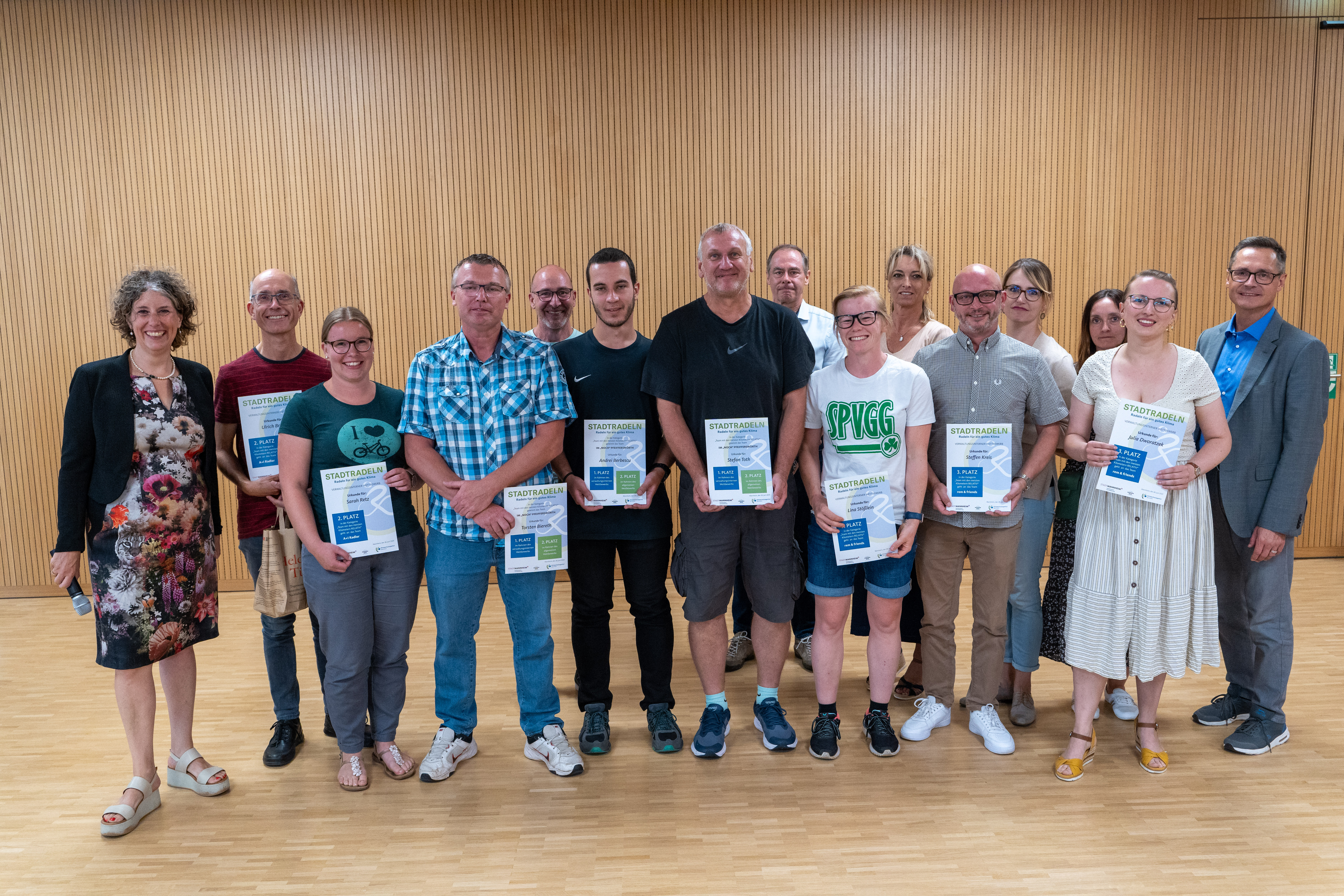 Gruppenbild der Gewinner des stadtinternen Wettbewerbs bei STADTRADELN 2023.