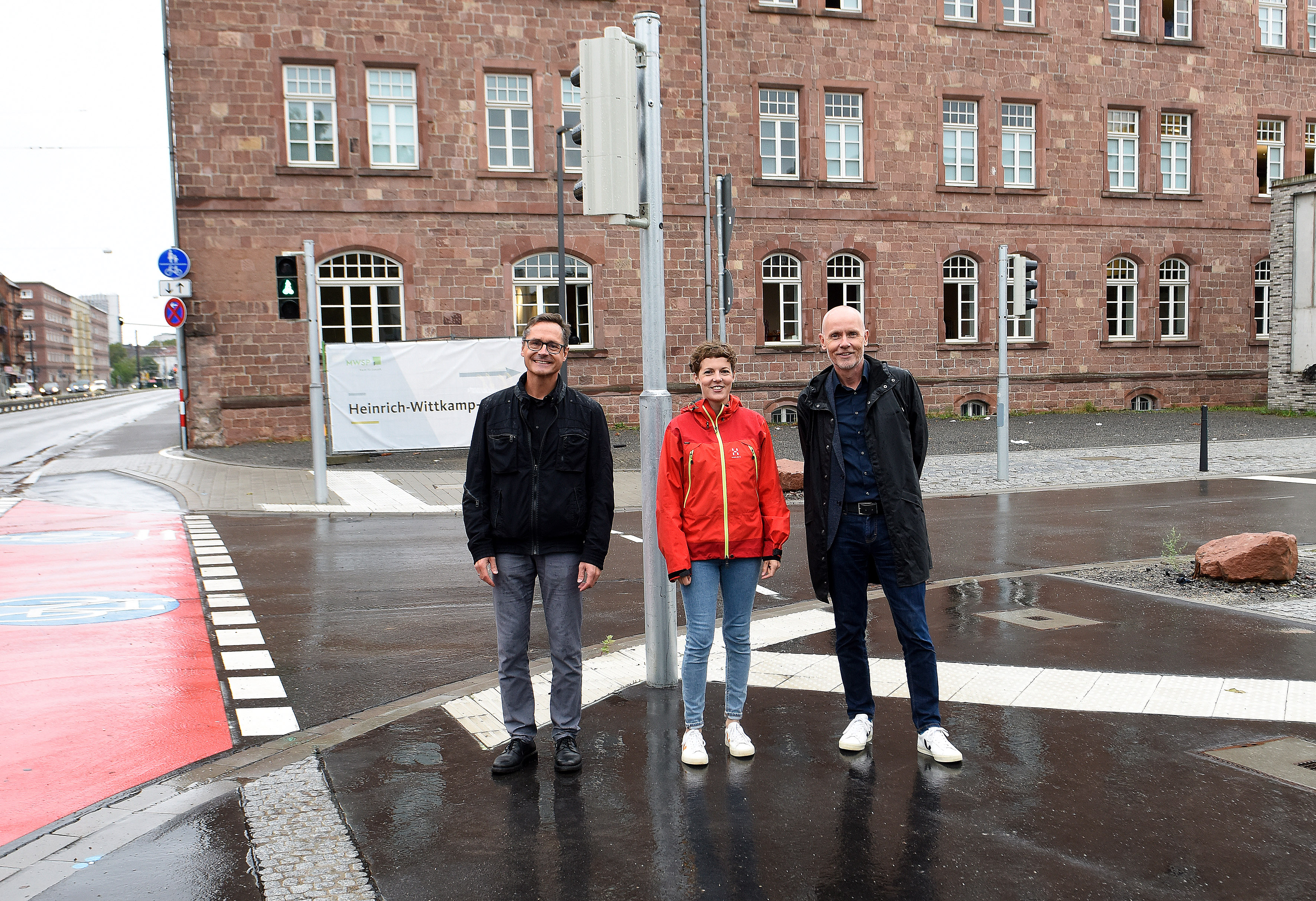 Baubürgermeister Ralf Eisenhauer; Irina Rabenseifner, MWSP-Projektleitung TURLEY, und MWSP-Geschäftsführer Achim Judt (v.l.) bei der Öffnung der Heinrich-Witt-kamp-Straße auf TURLEY.