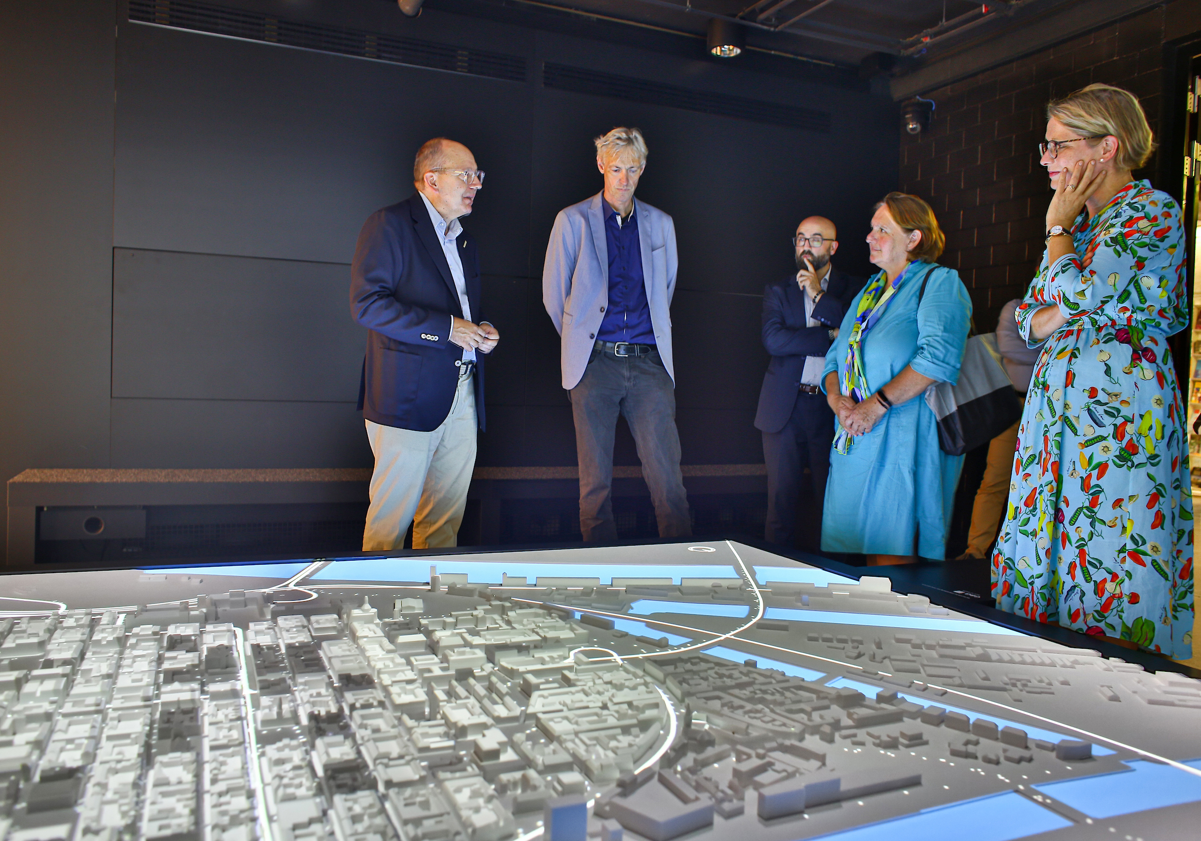 Unser Bild zeigt von links nach rechts Oberbürgermeister Christian Specht, Alexander Adler (CEO ADLER Investment), Seunghyun Oh(CEO HD Hyundai Infracore), Johann Georg Adler III (Gesellschafter, Vorsitzender des Beirats ADLER Investment)