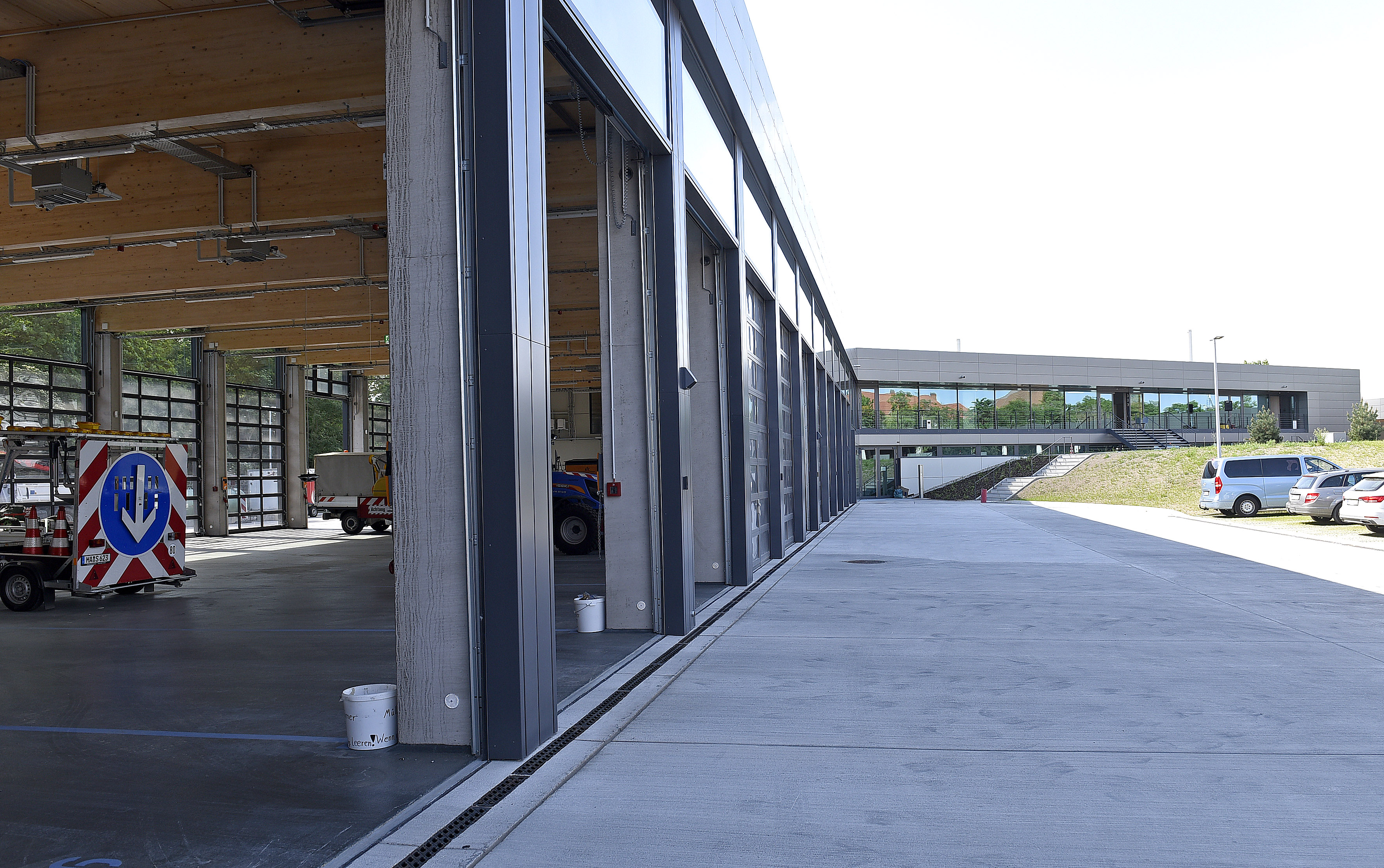 Alexandra Kriegel, Eigenbetriebsleiterin Stadtraumservice, Oberbürgermeister Dr. Peter Kurz, Bürgermeisterin Prof. Dr. Diana Pretzell und Hans-Georg Hering, Geschäftsführer der ABG Abfallbeseitigungsgesellschaft mbH freuen sich über den neuen Betriebshof Morchhof