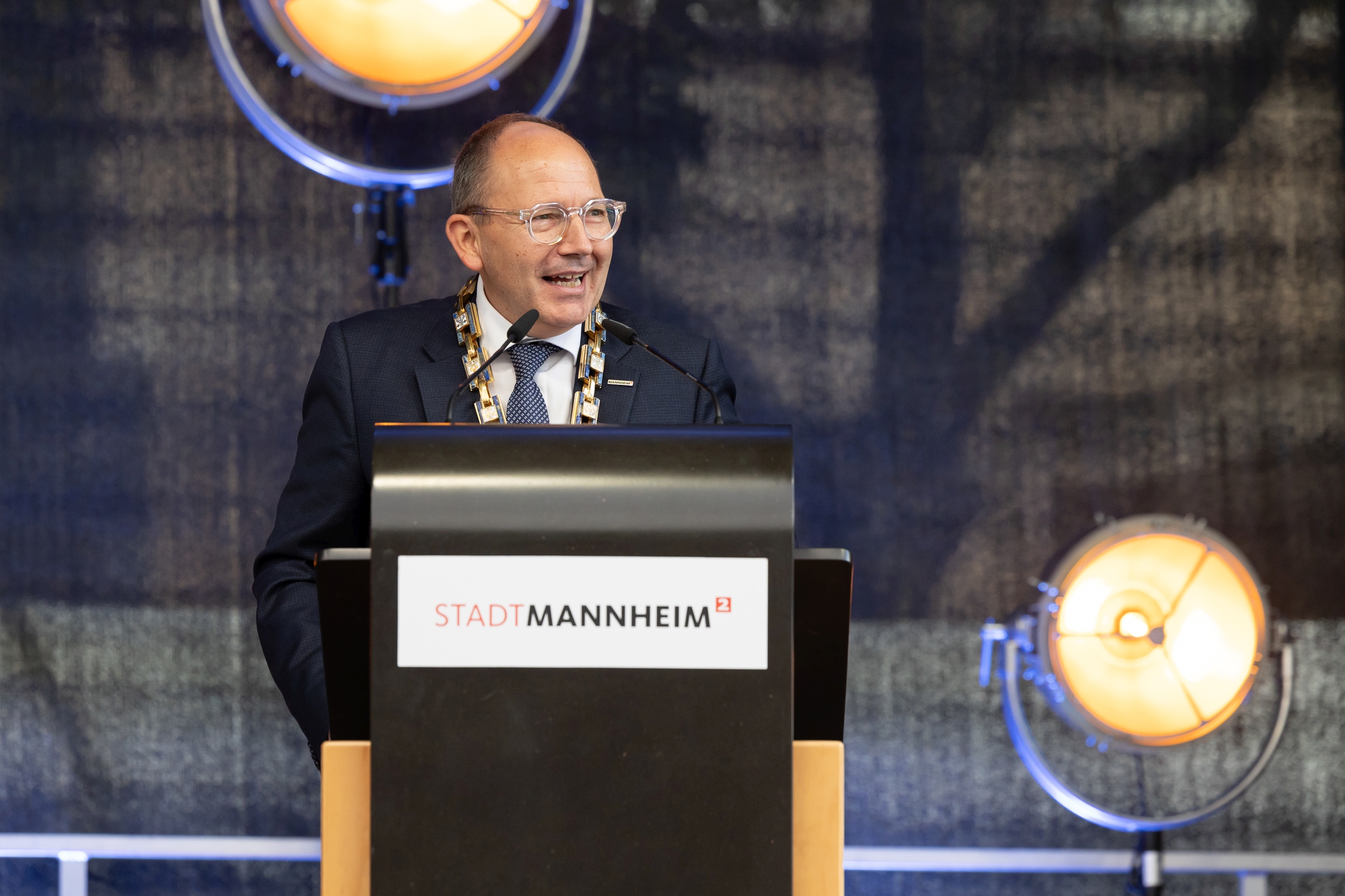 Oberbürgermeister Christian Specht bei seiner Antrittsrede im Rahmen der Amtseinführung auf dem Toulonplatz.