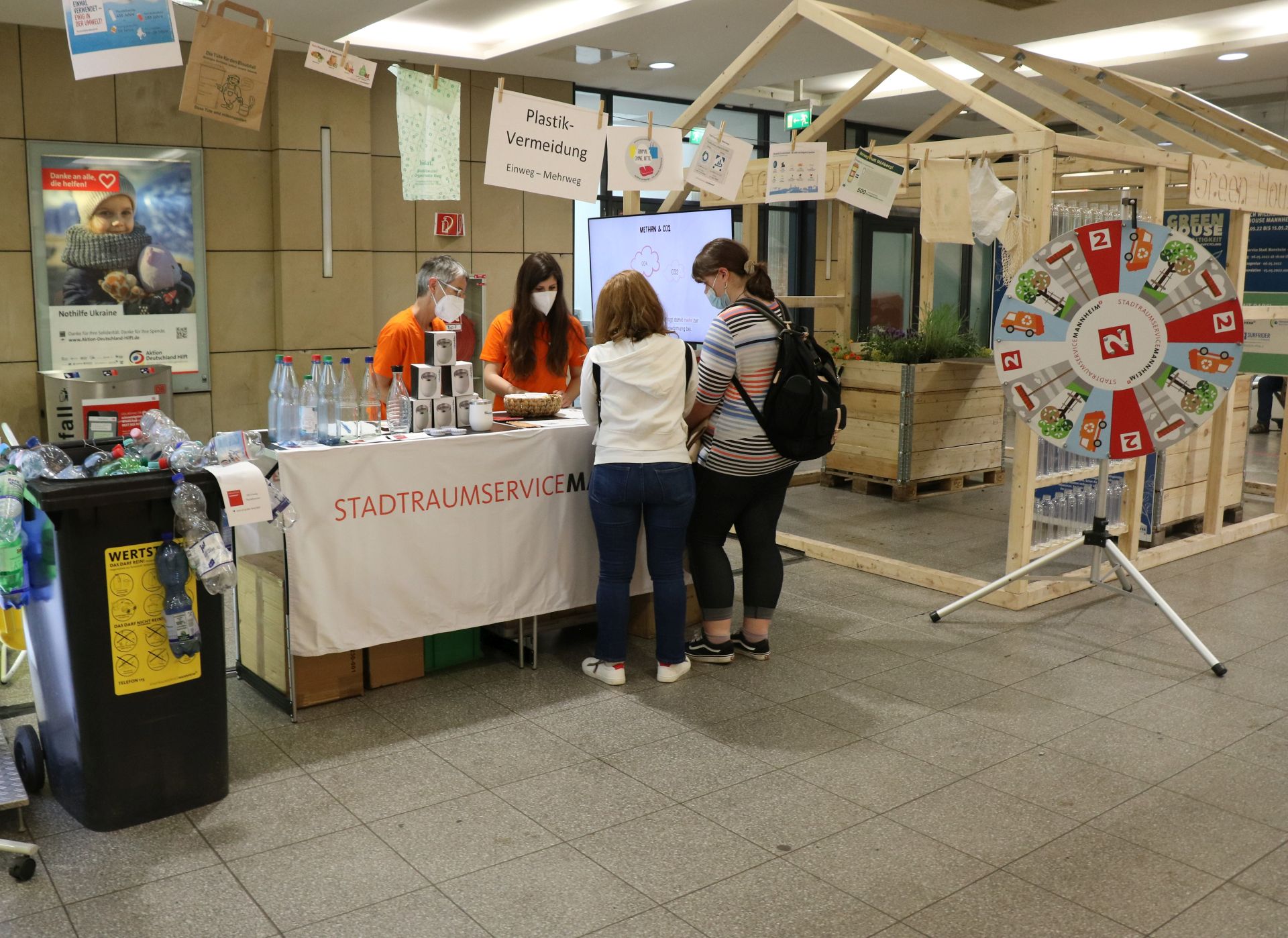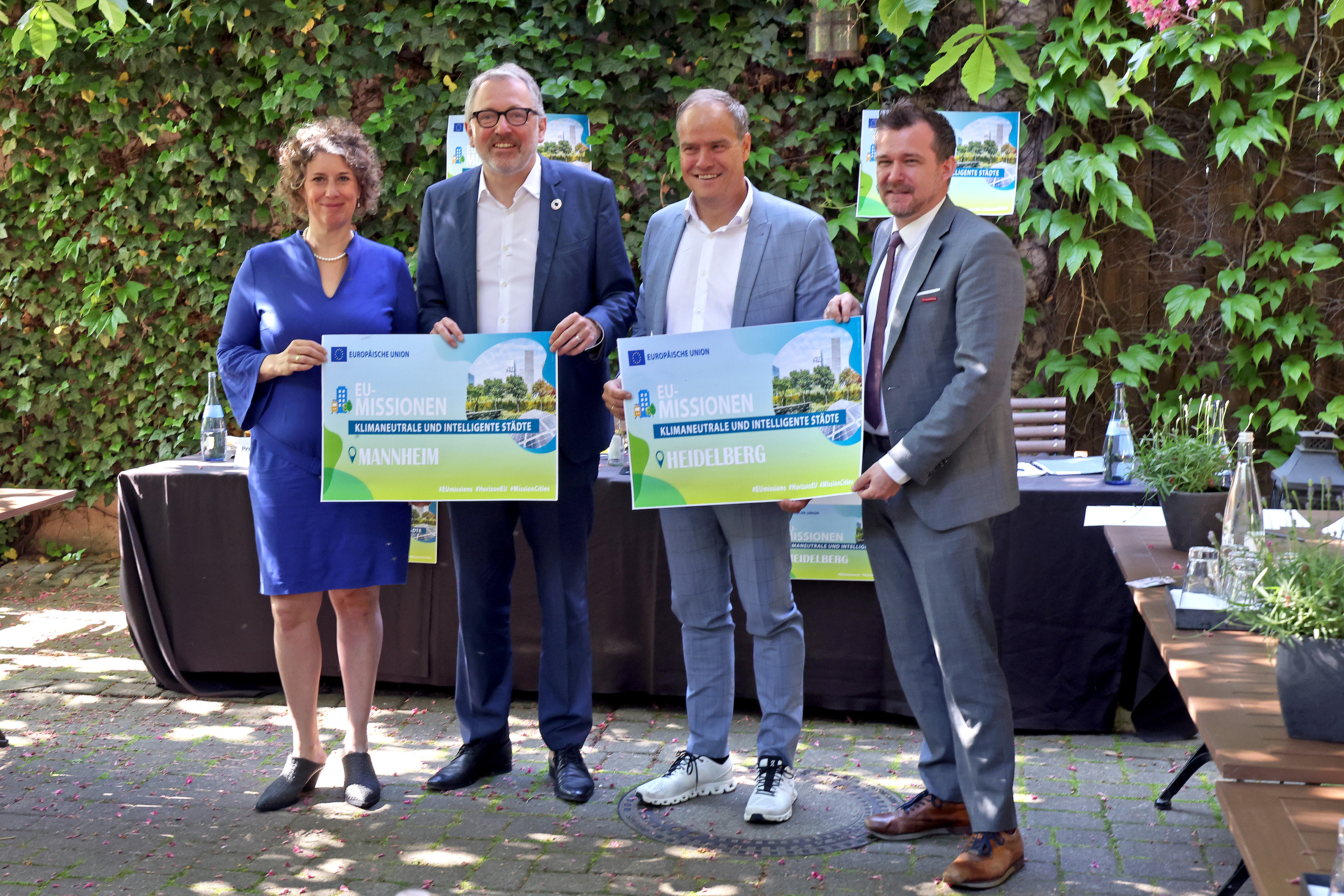 Laurent Jerome, stellvertretender Bürgermeister der Stadt Toulon, und Magali Turbatte, stellvertretende Bürgermeisterin der Mannheimer Partnerstadt Toulon gemeinsam mit dem Ersten Bürgermeister Christian Specht beim Besuch des französischen Markts auf den Kapuzinerplanken.